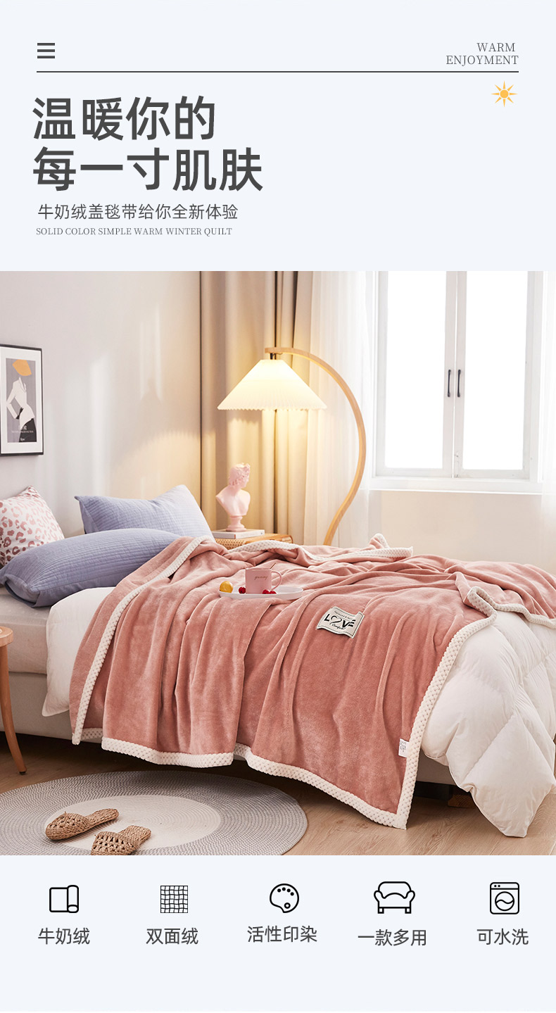 (总)坦客毯业 2025年新款纯色牛奶绒毛毯沙发盖毯午睡毯子(跨境外贸)