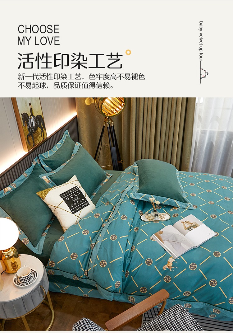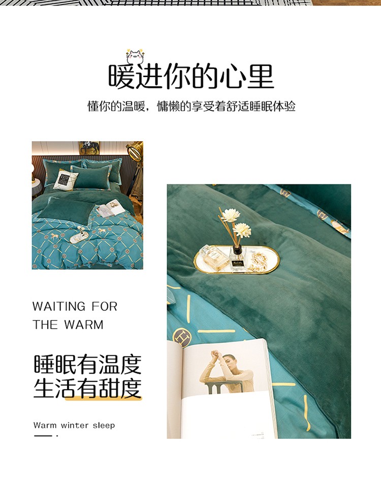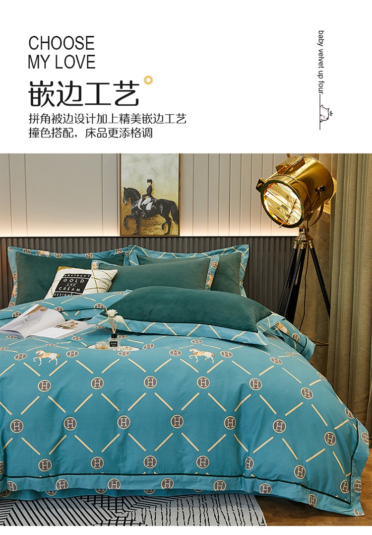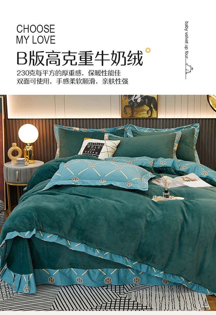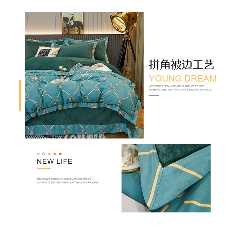 杜先生2021新款230克牛奶绒拼角被边款四件套轻奢生活-绿