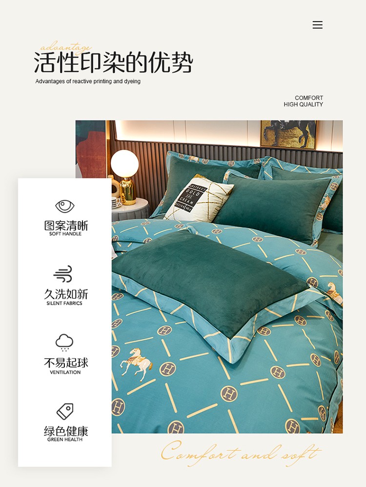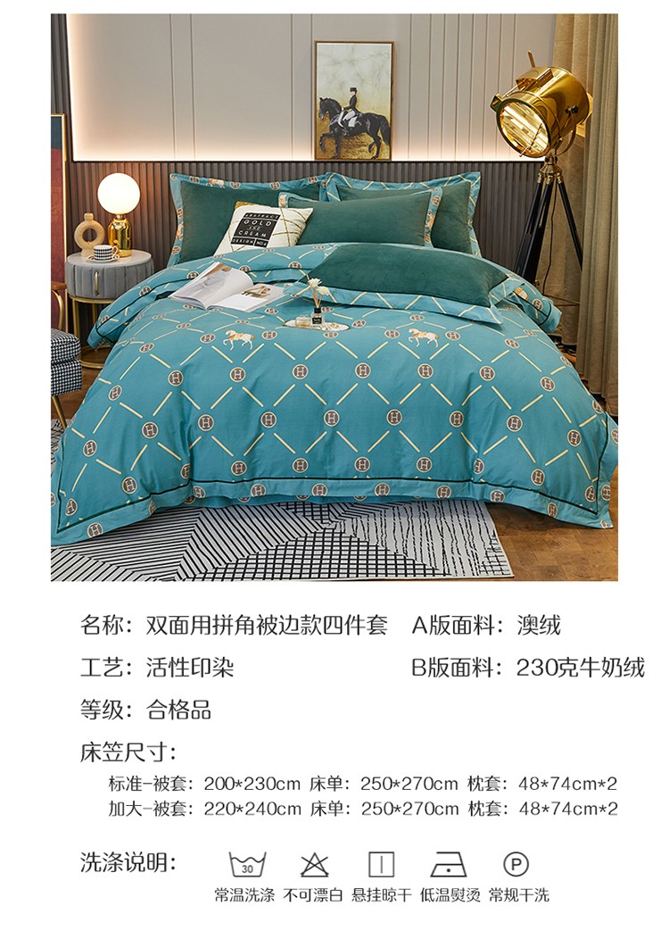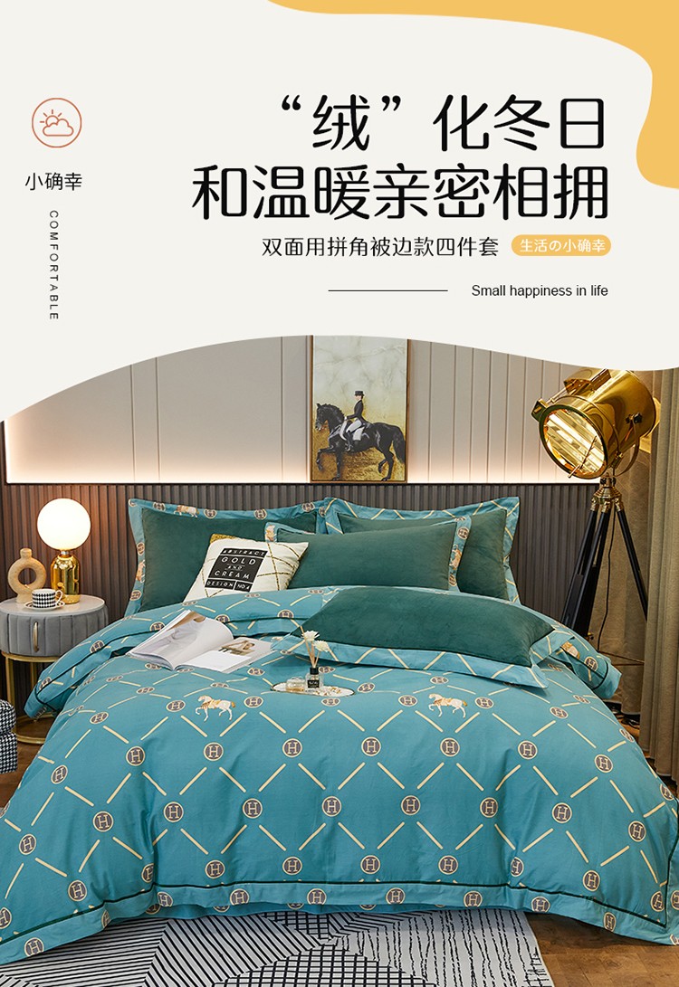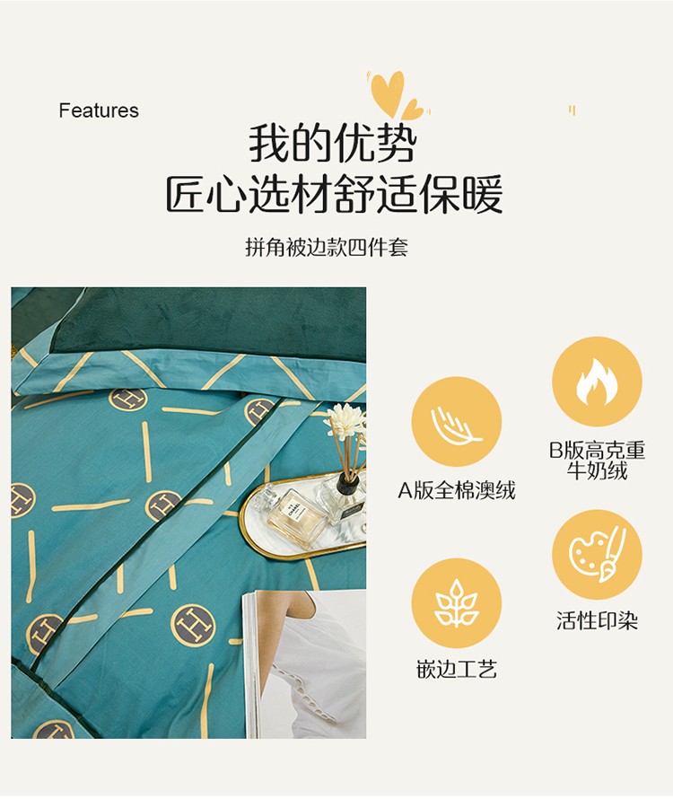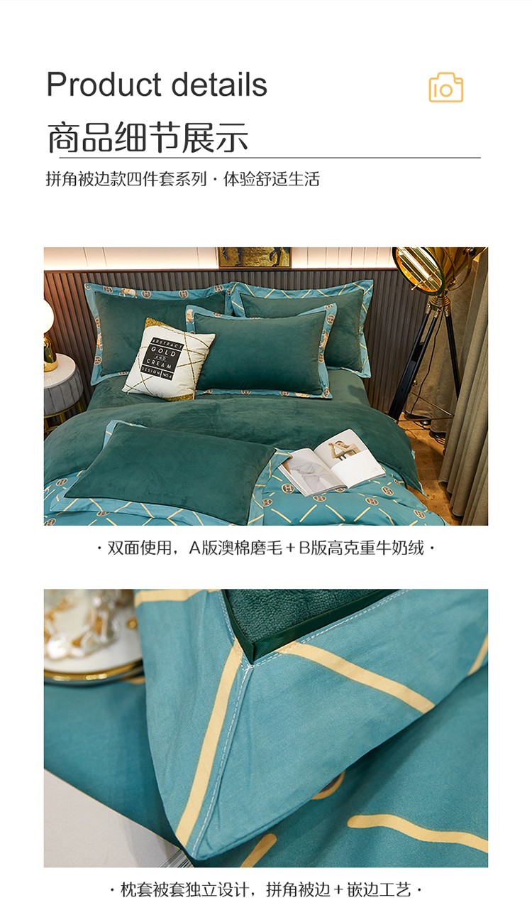 商品名称:杜先生2021新款230克牛奶绒拼角被边款四件套轻奢生活-绿
