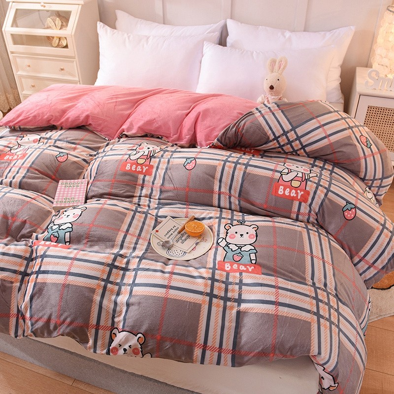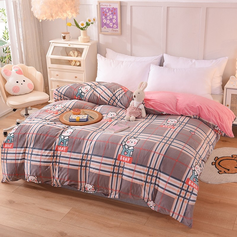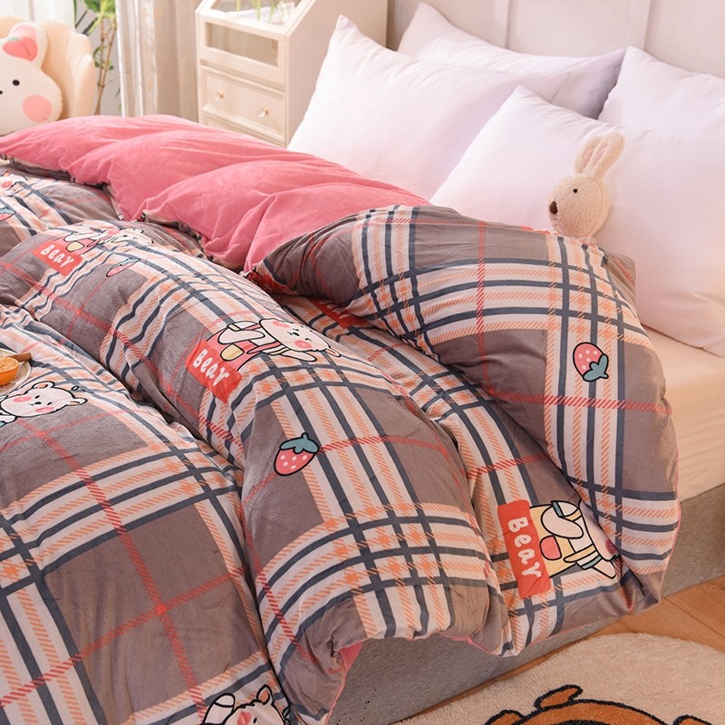 商品名称:甜之梦 2025新款水晶绒单品被套 格子萌熊