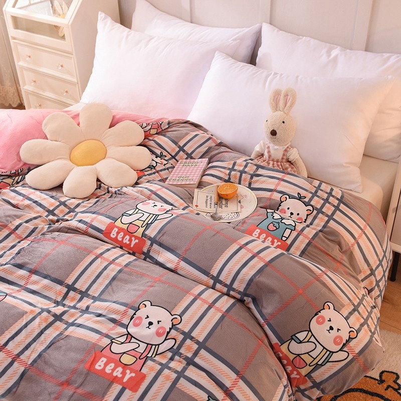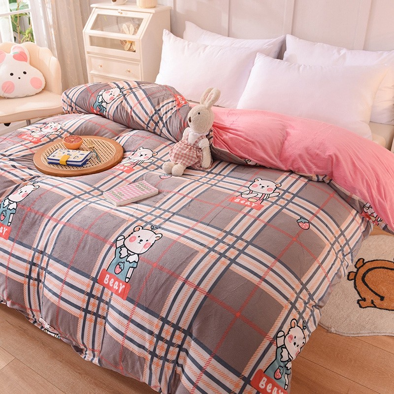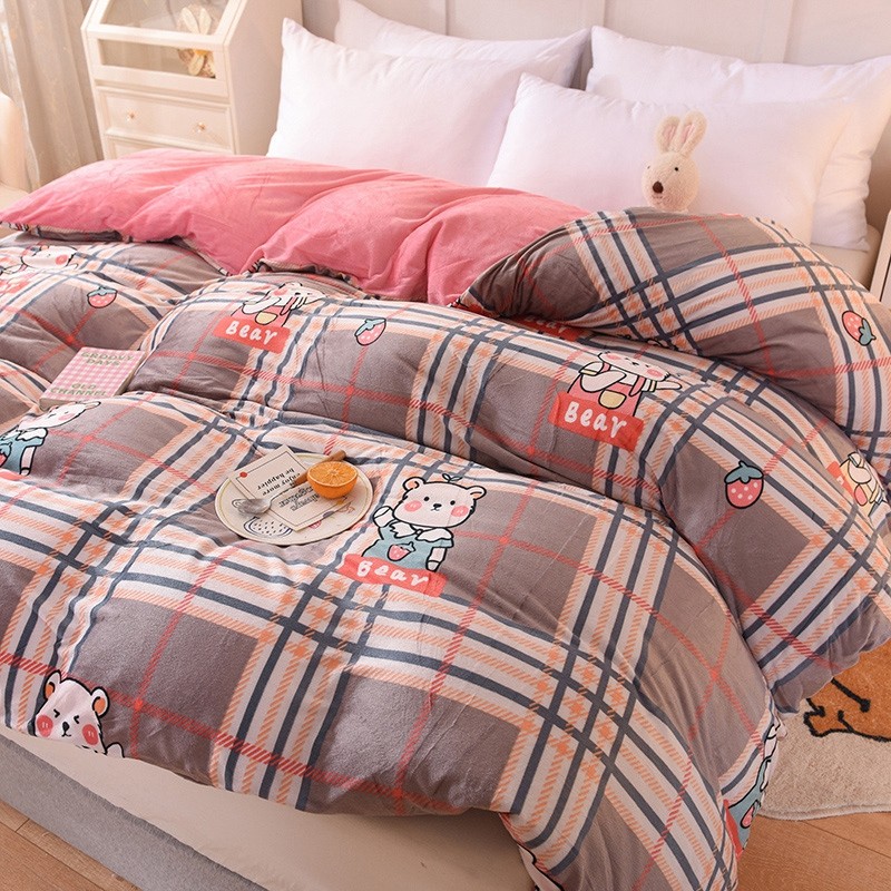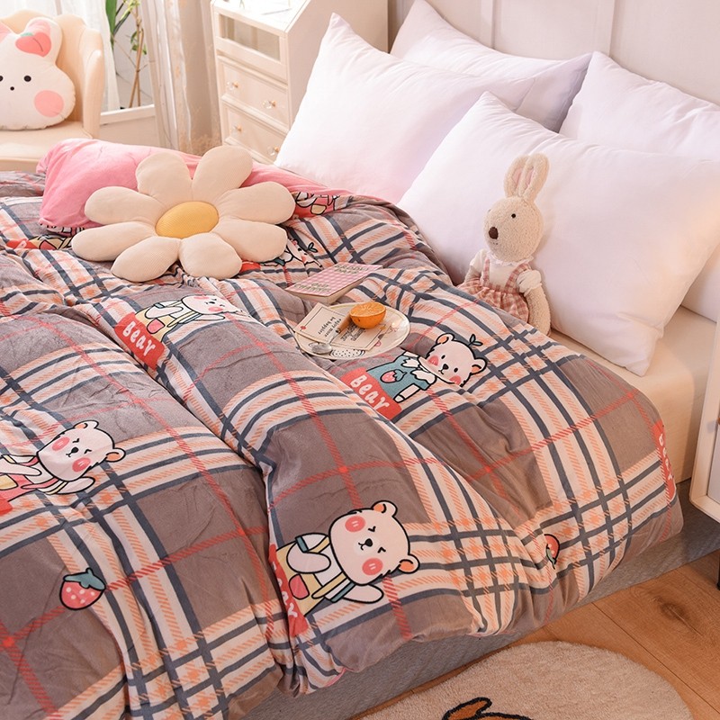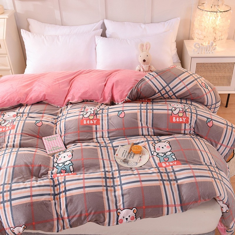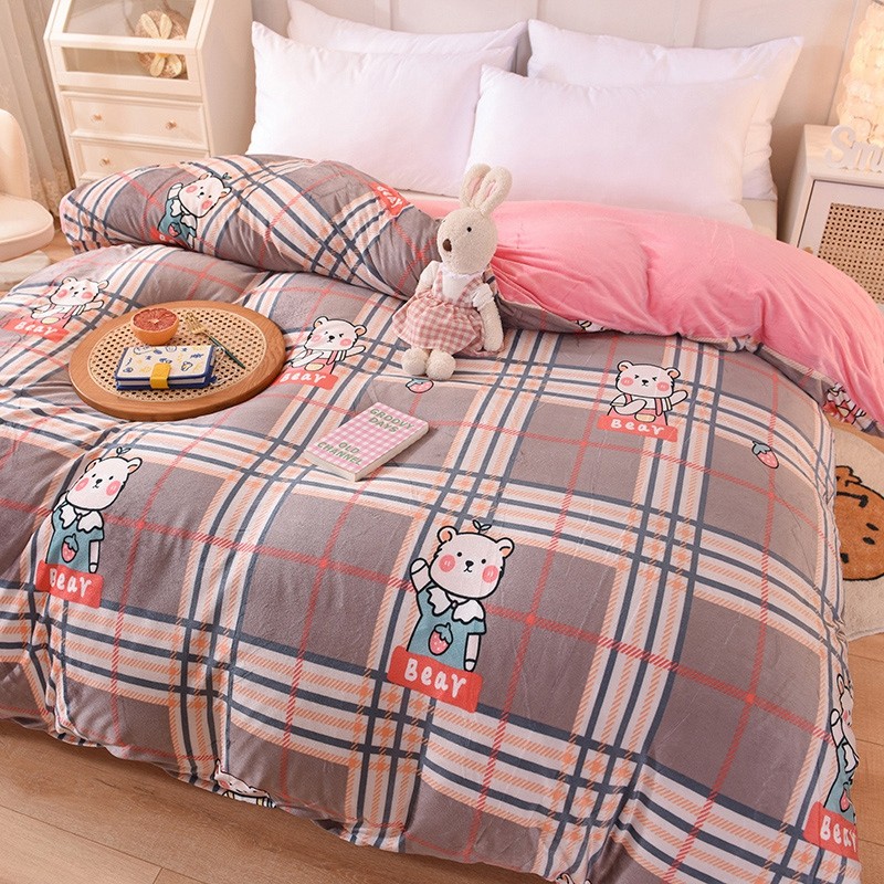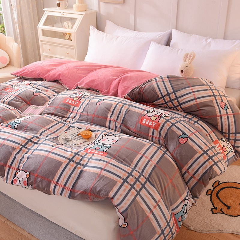 甜之梦 2025新款水晶绒单品被套 格子萌熊