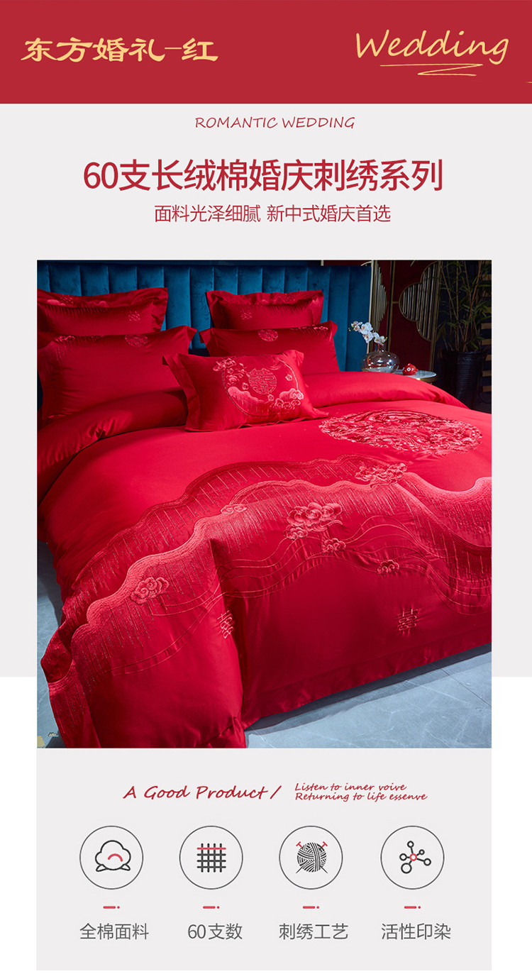 当前位置: 91家纺网 > 商品网购 > 床品套件 > 多件套 > 多件套 > (总) 高大尚 2021新款60支长绒棉婚庆多件套