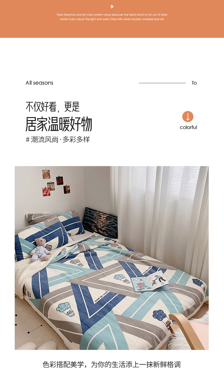 (总)雅居纺家纺 2025新款简约兔绒球球保暖舒适四件套-波点,波点-白咖,波点-粉黄,波点-咖,波点-蓝黄