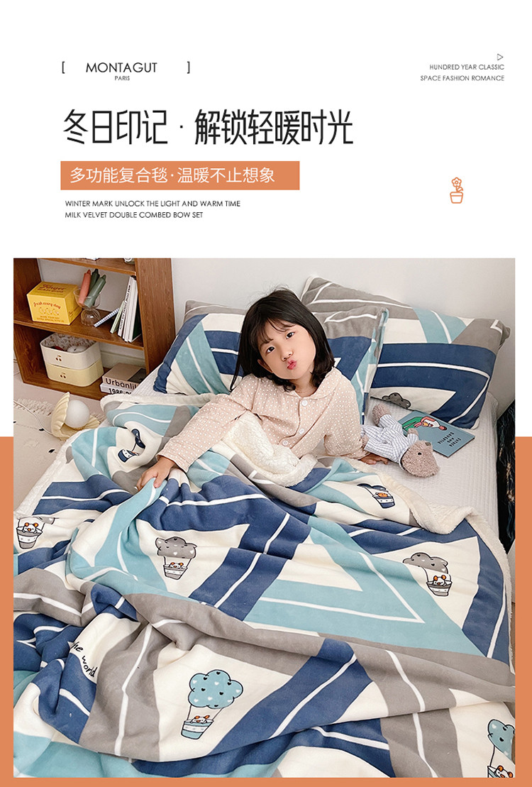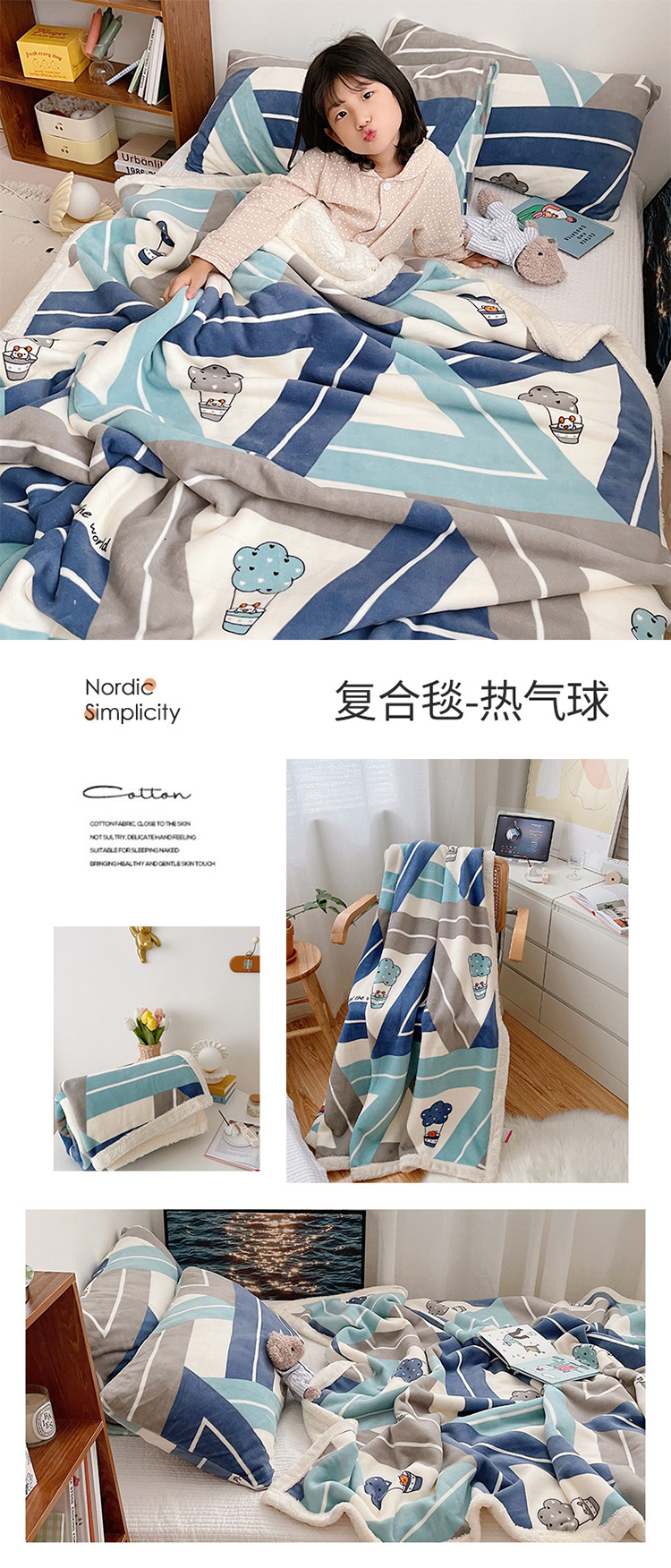 商品名称:雅居纺 2022新款A版牛奶绒B版羊羔绒复合毯 热气球