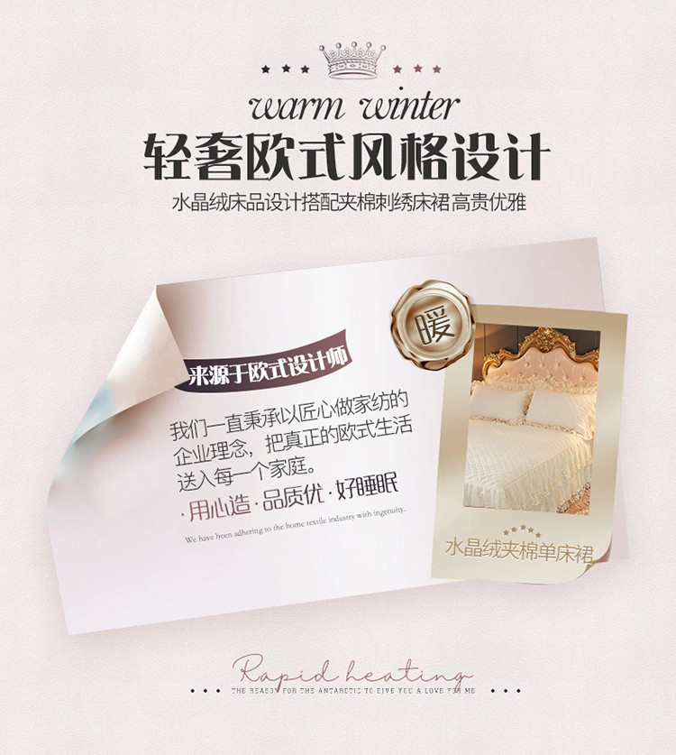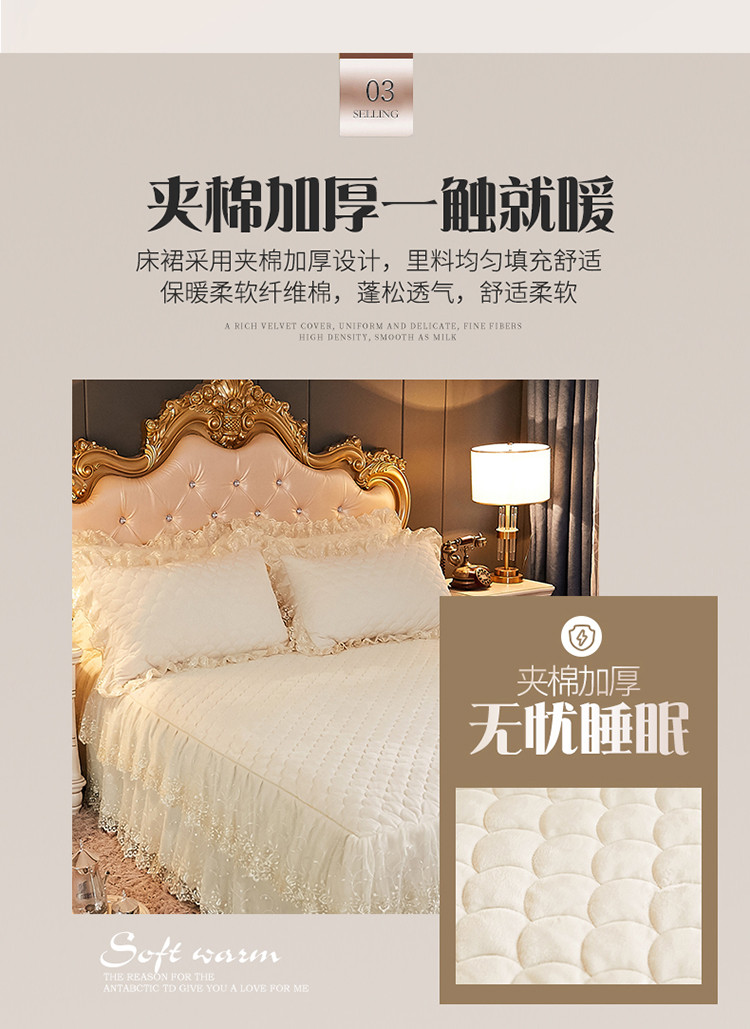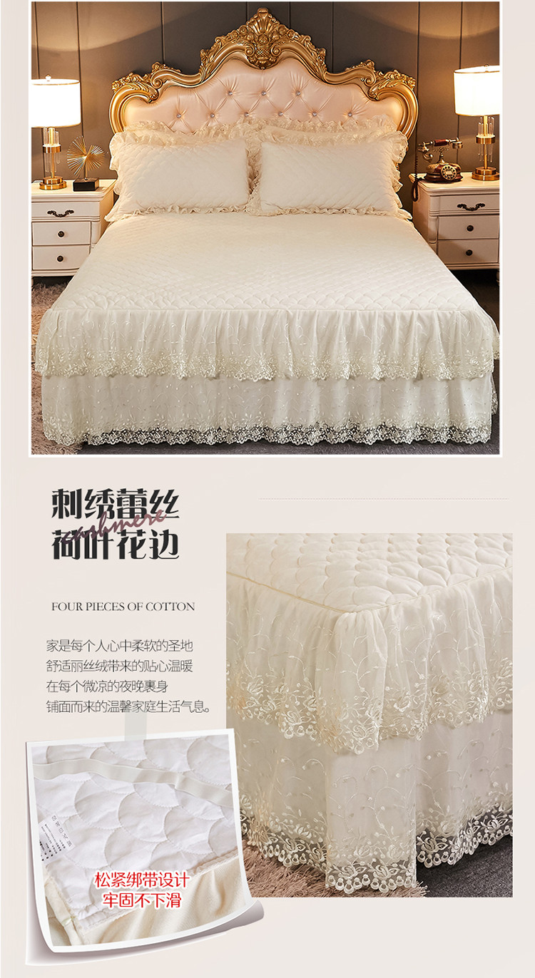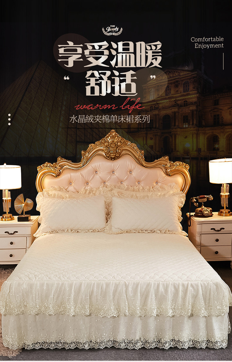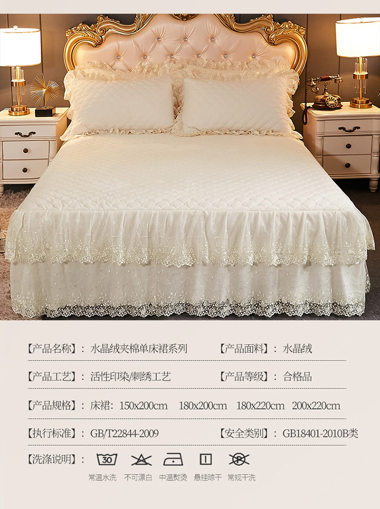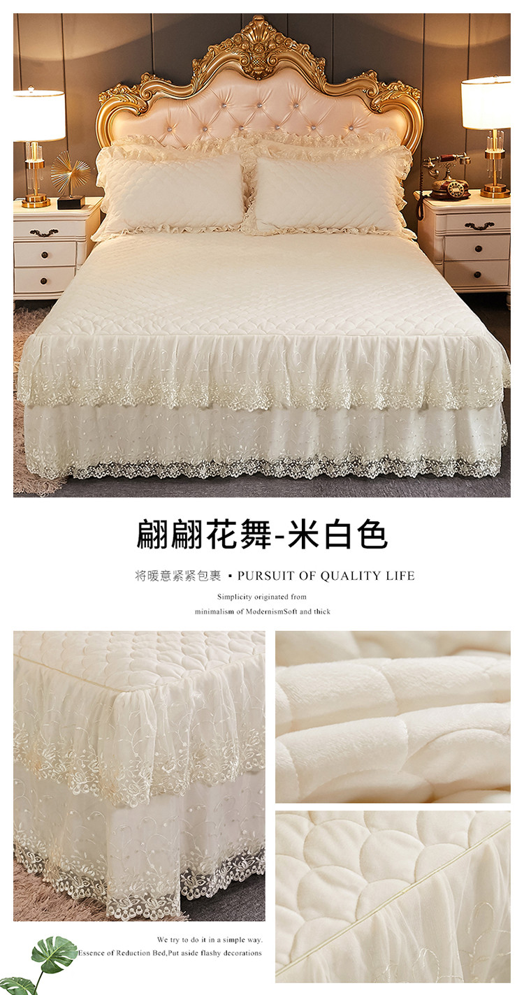 • 91家纺网 家纺一手货源 找家纺 恒爱 2021新款水晶绒夹棉刺绣单床裙 翩翩花舞-米白色