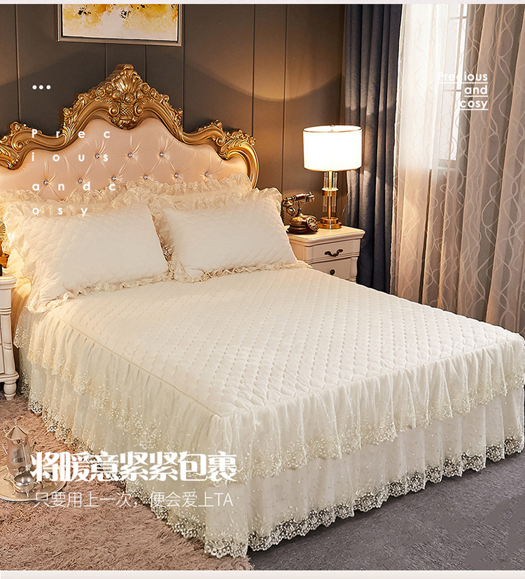 恒爱 2021新款水晶绒夹棉刺绣单床裙 翩翩花舞-米白色