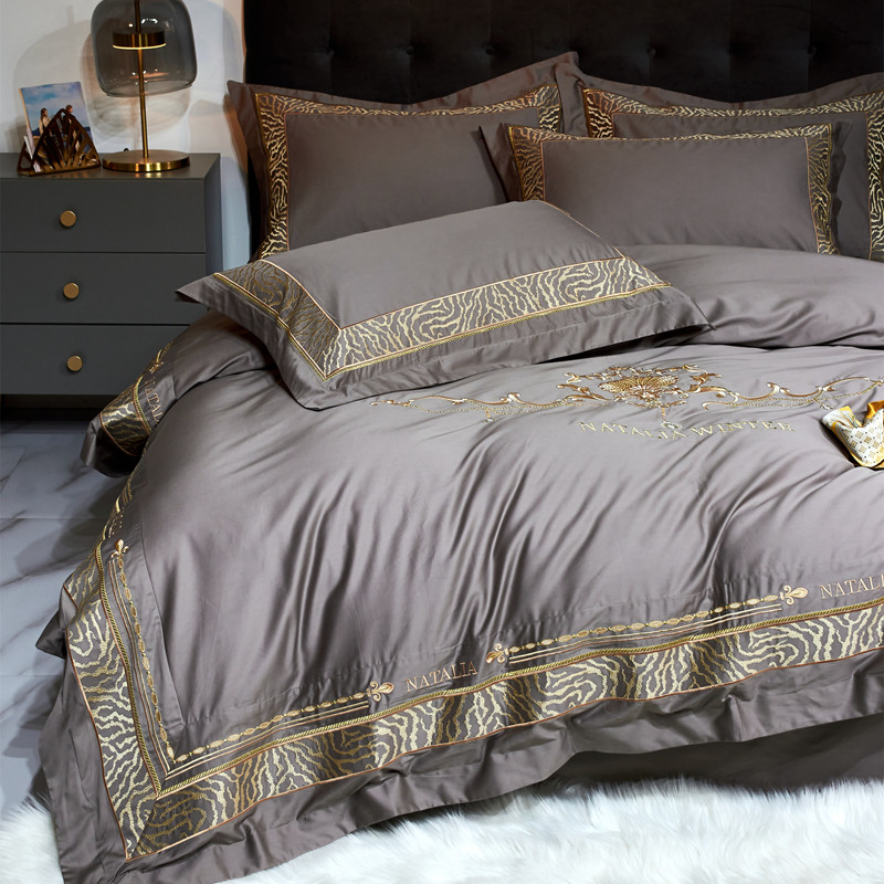 (总)星尚家纺 2024全消光A类230g牛奶绒绣花保暖绒四件套-豹纹,卡其色,奶昔白,时尚灰,芝芝粉