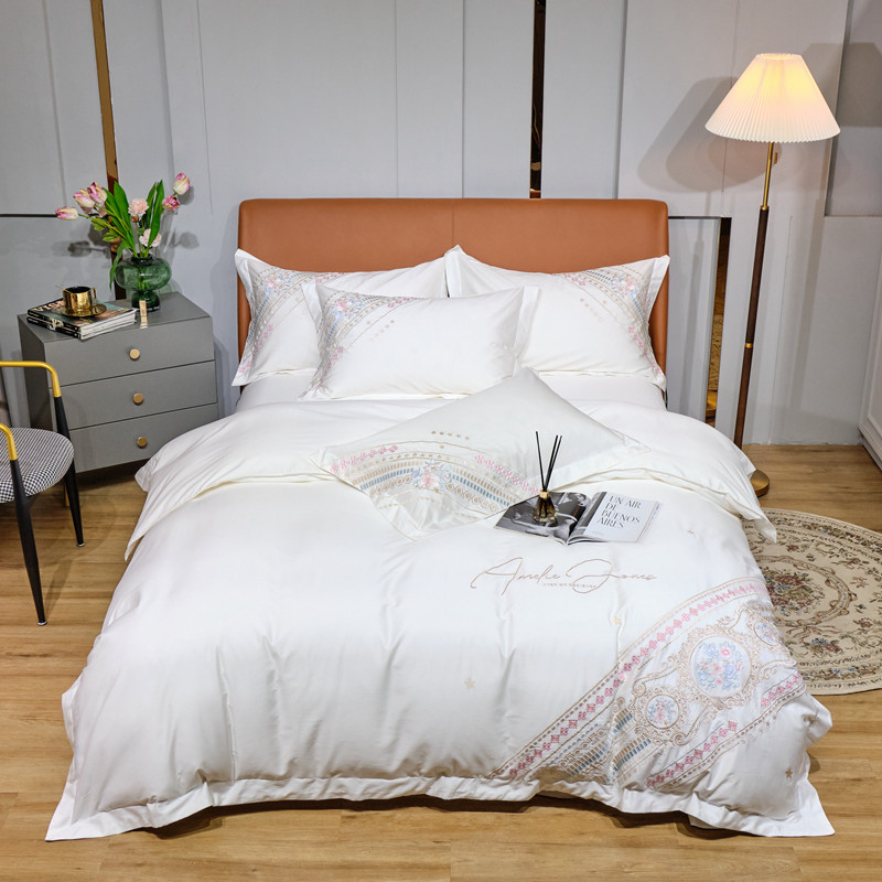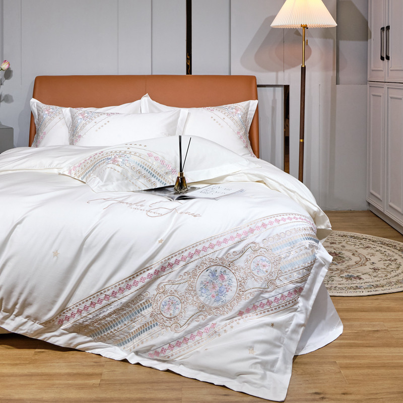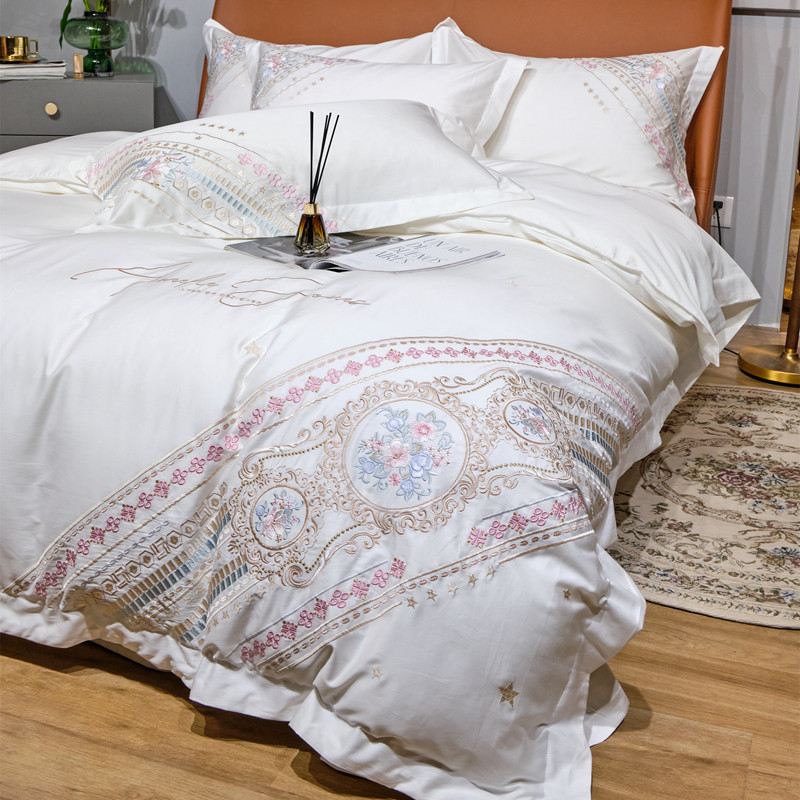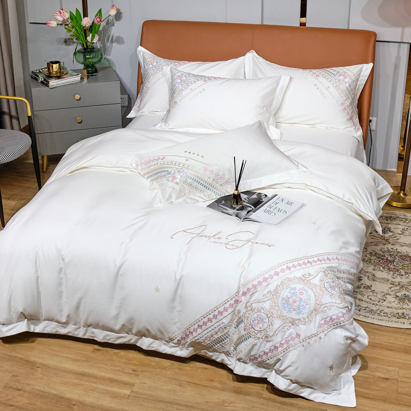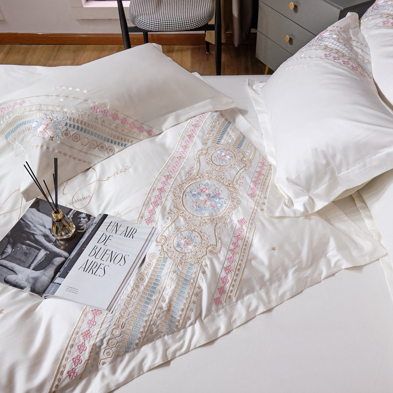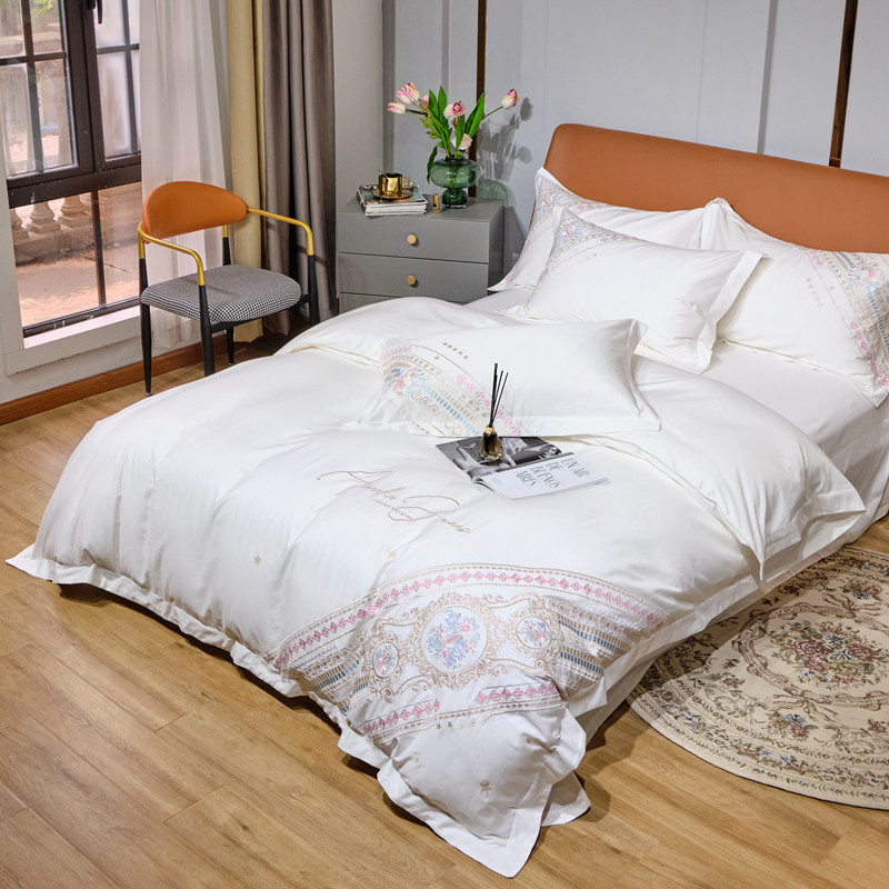 商品名称:星尚 2021新款秋冬100支长绒棉四件套-楼兰花语 奶白