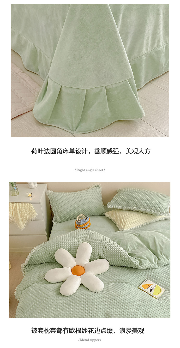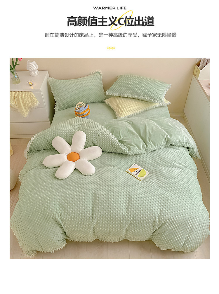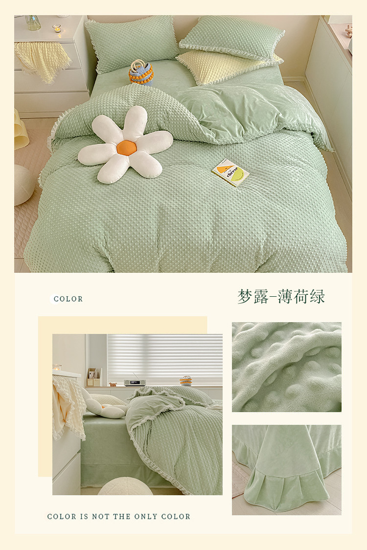商品名称:玛奇朵 2021新款豆豆绒珍珠款四件套-梦露系列 梦露-薄荷绿