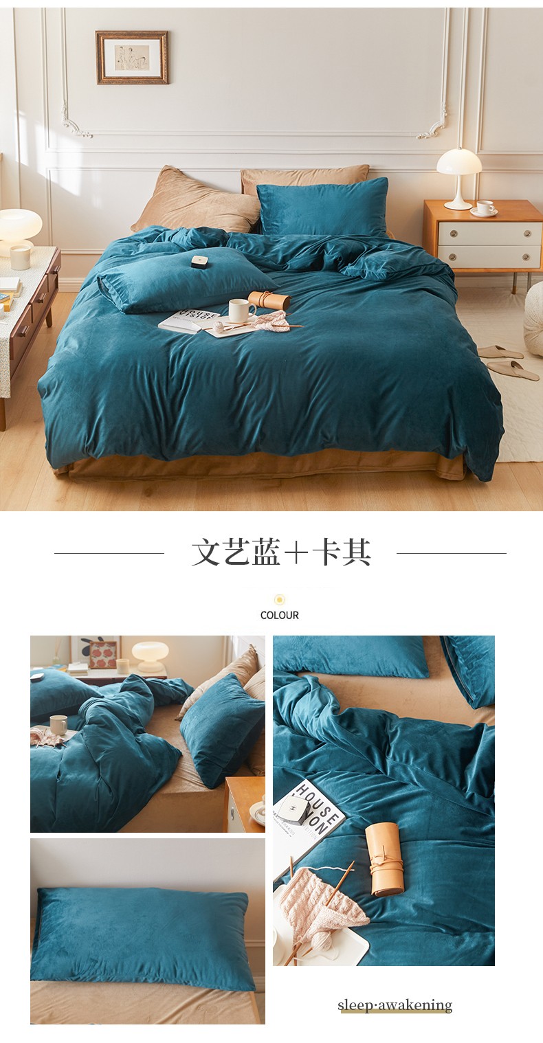 当前位置: 91家纺网 > 商品网购 > 床品套件 > 四件套 > 牛奶绒四件套 > 2021高克重北欧风牛奶绒天鹅绒法莱绒四件套 文艺蓝+卡其