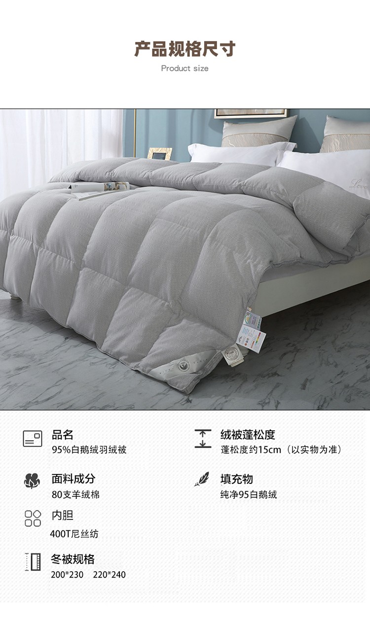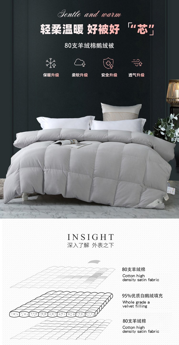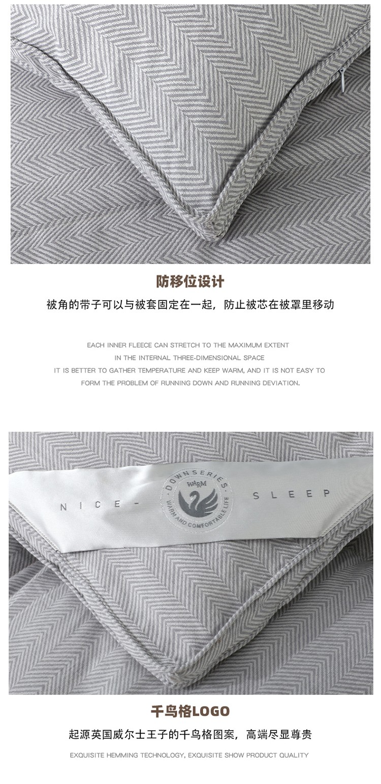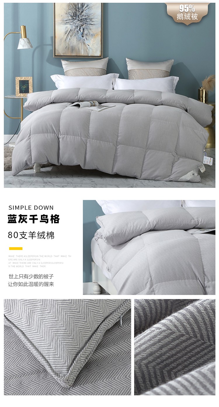 商品名称:锦瑞羽绒 2024新款千鸟格80支羊绒棉鹅绒被冬被被子被芯 蓝灰千鸟格