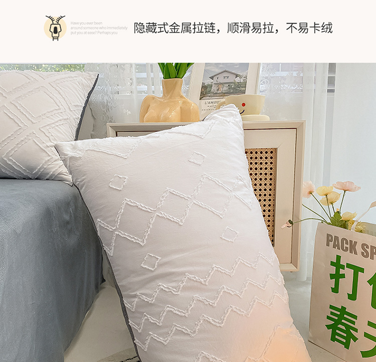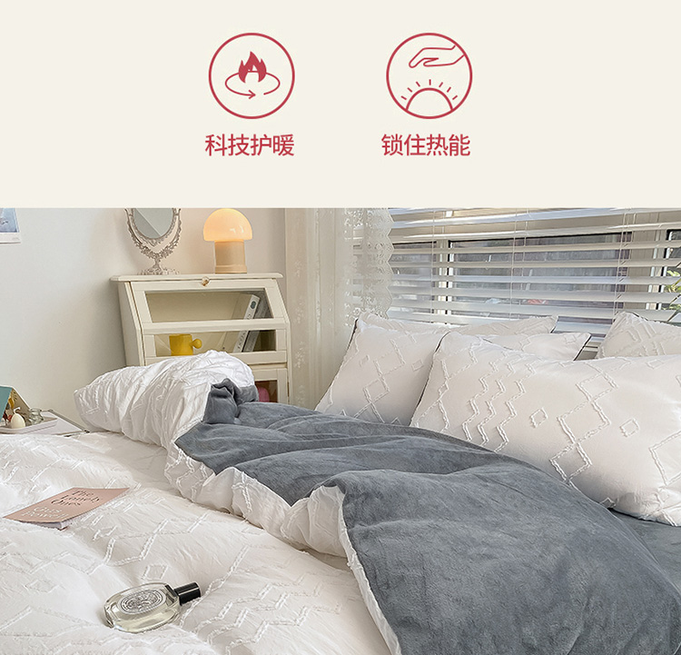 琪格格纺织 2023新款韩式水洗棉剪花+牛奶绒四件套 洛克白