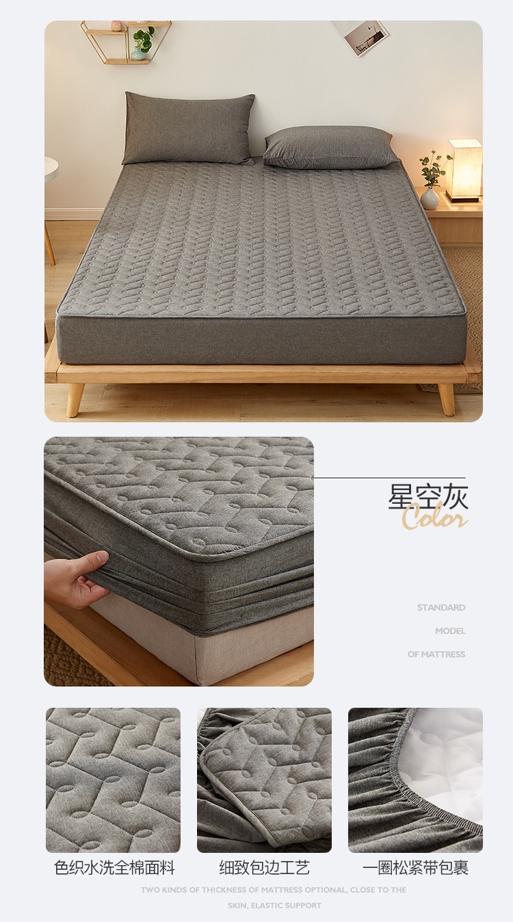 (总)爱喔 2021新款日式良品A类全棉色织水洗棉夹棉床笠