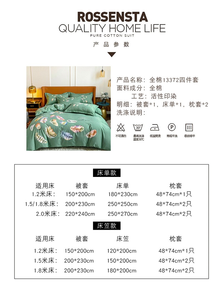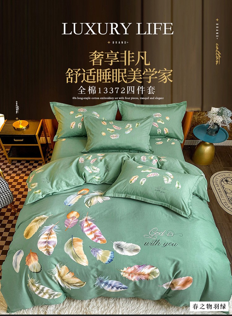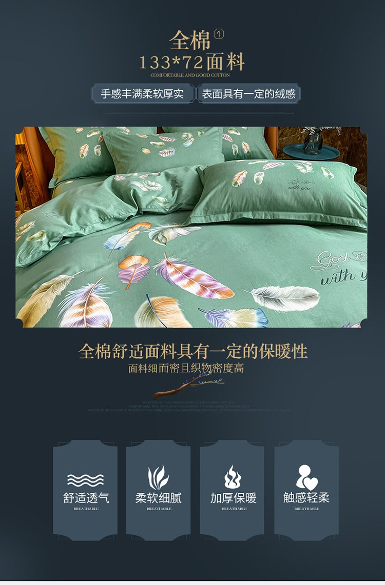 商品名称:金爱家 2023新款大版13372全棉花卉系列四件套 春之物羽绿