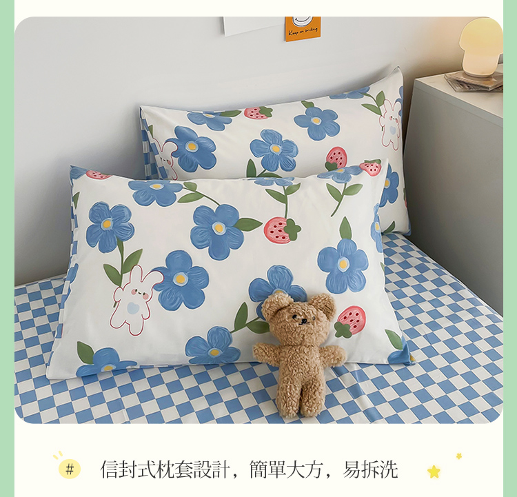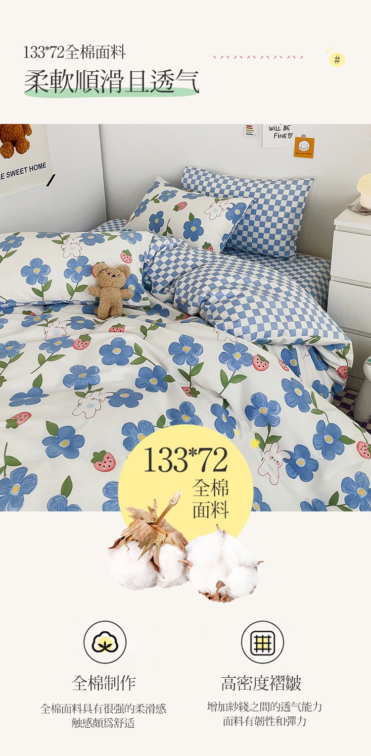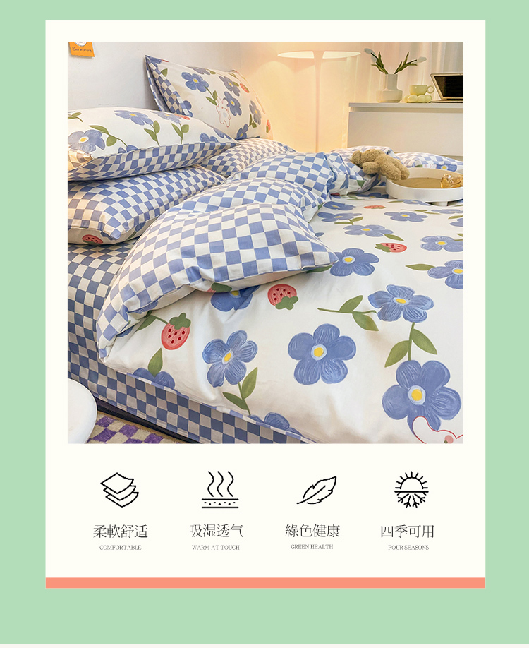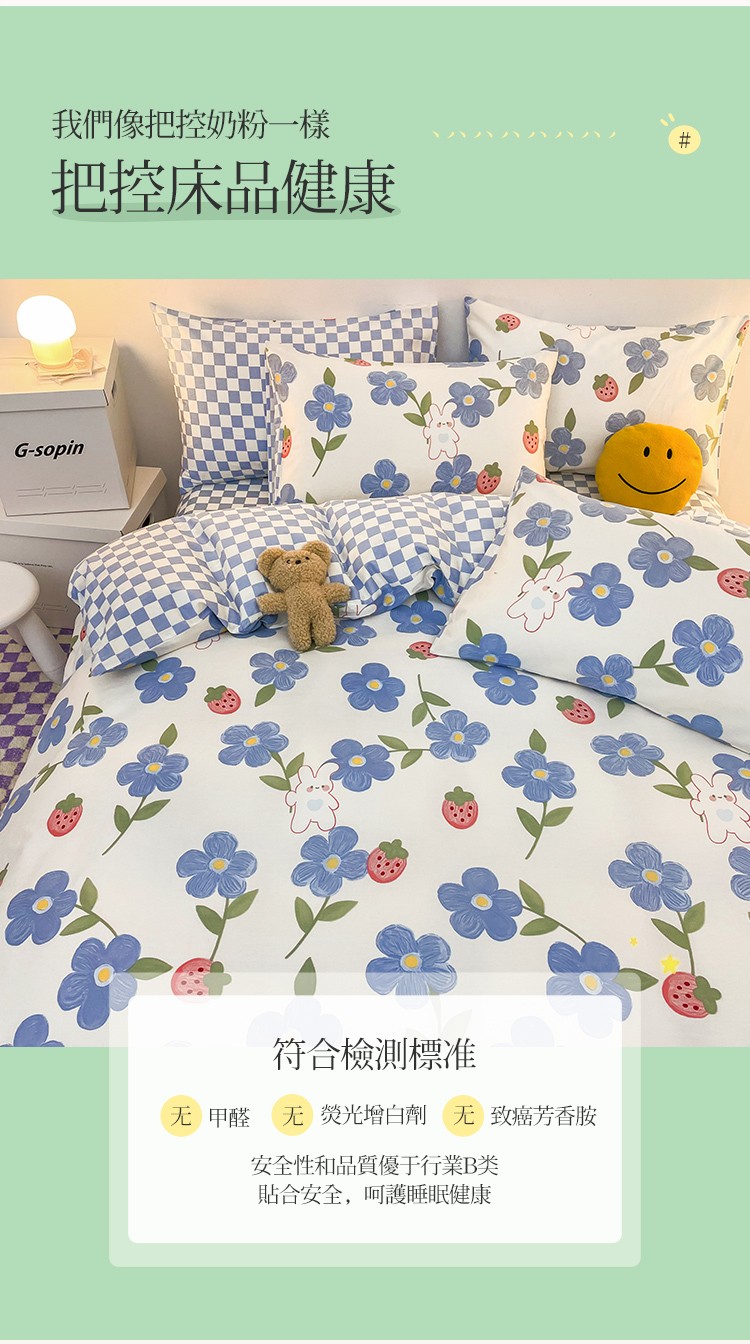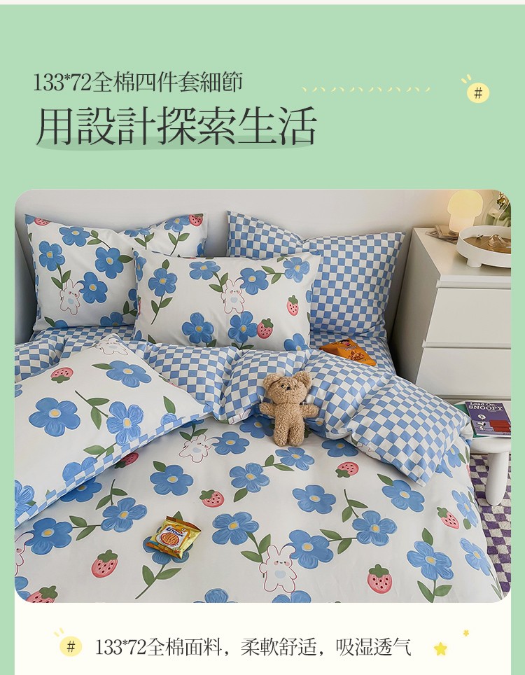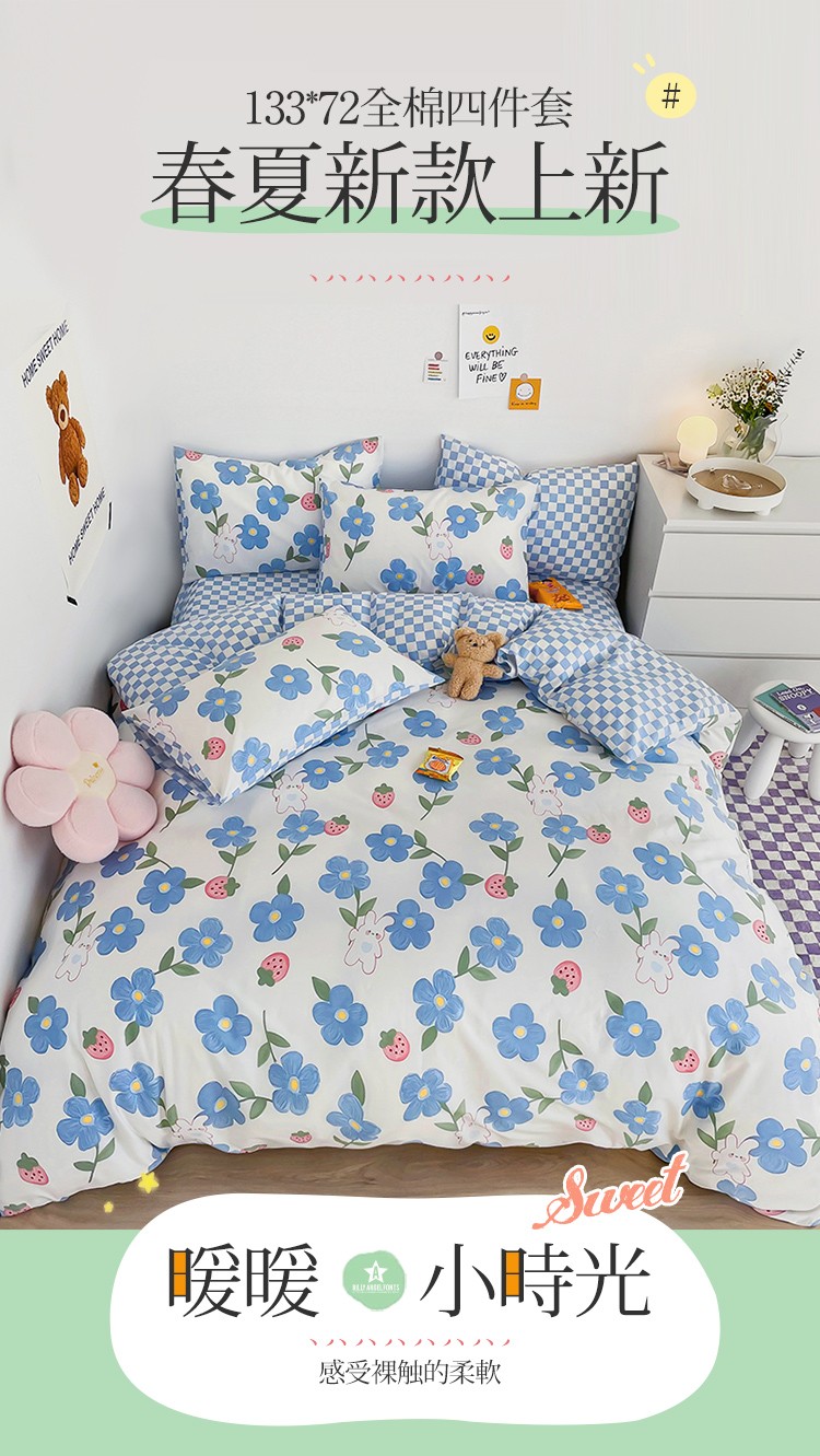 当前位置: 91家纺网 > 商品网购 > 床品套件 > 四件套 > 全棉普通四件套 > 安哆啦 2022春夏新款13372全棉四件套 蓝色心情