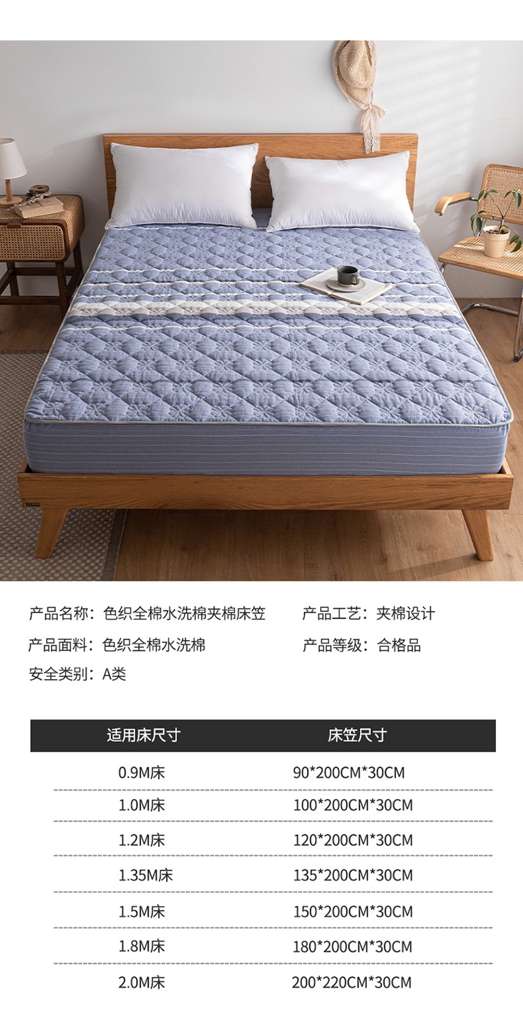 商品名称:东宇 2022新款色织全棉水洗棉夹棉床笠 格林蓝