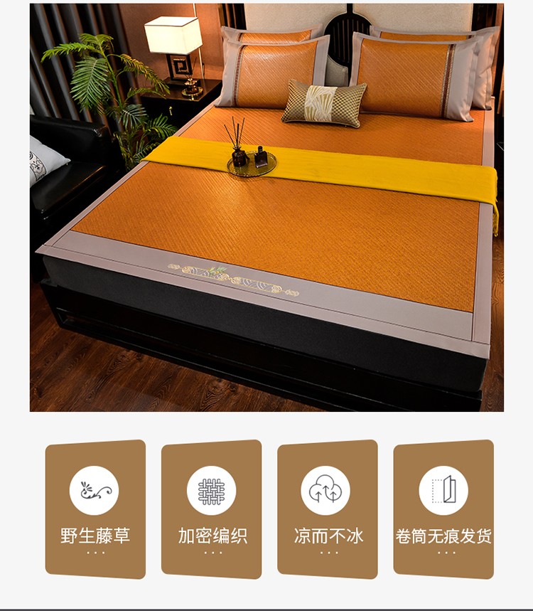 (总)小牛席业2023新款小苍兰清香冰藤席系列凉席竹席冰丝席乳胶席,黑咖,金色,绿色,浅蓝,香槟,银灰