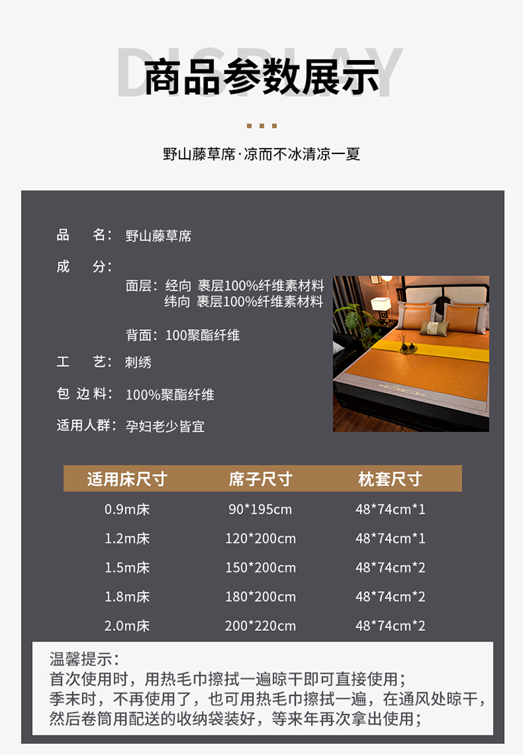 商品名称:小牛席业 2022年新款野山藤草席系列 野山藤草席(红棕)