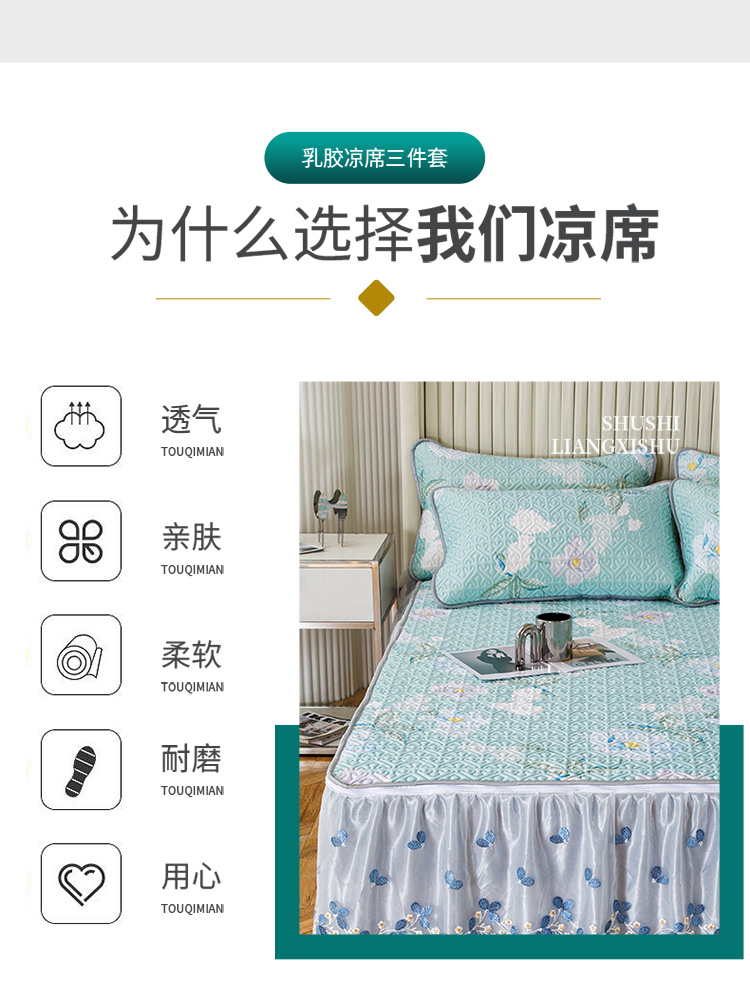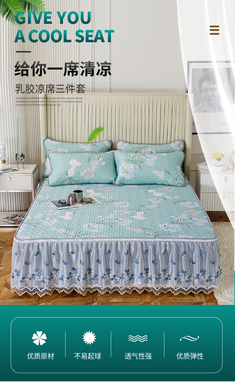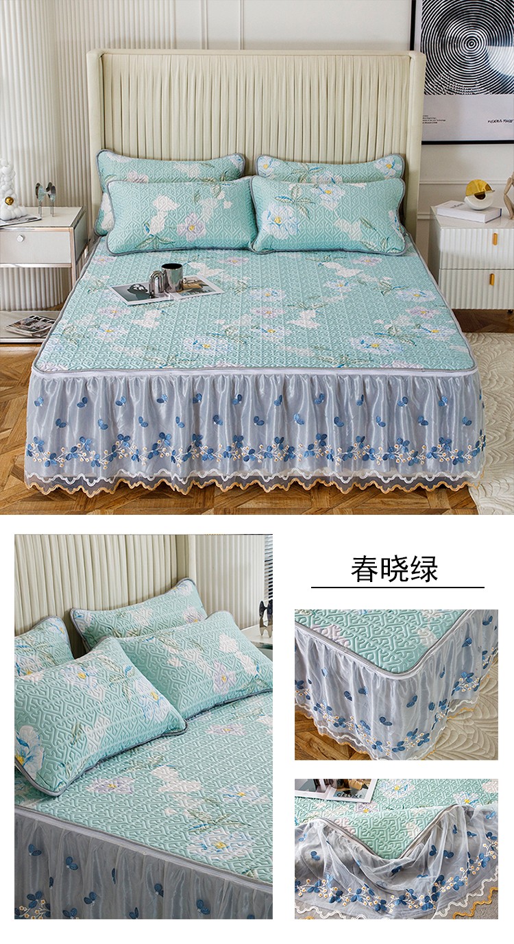 纽缦家纺 2022新款花卉床裙三件套 春晓绿