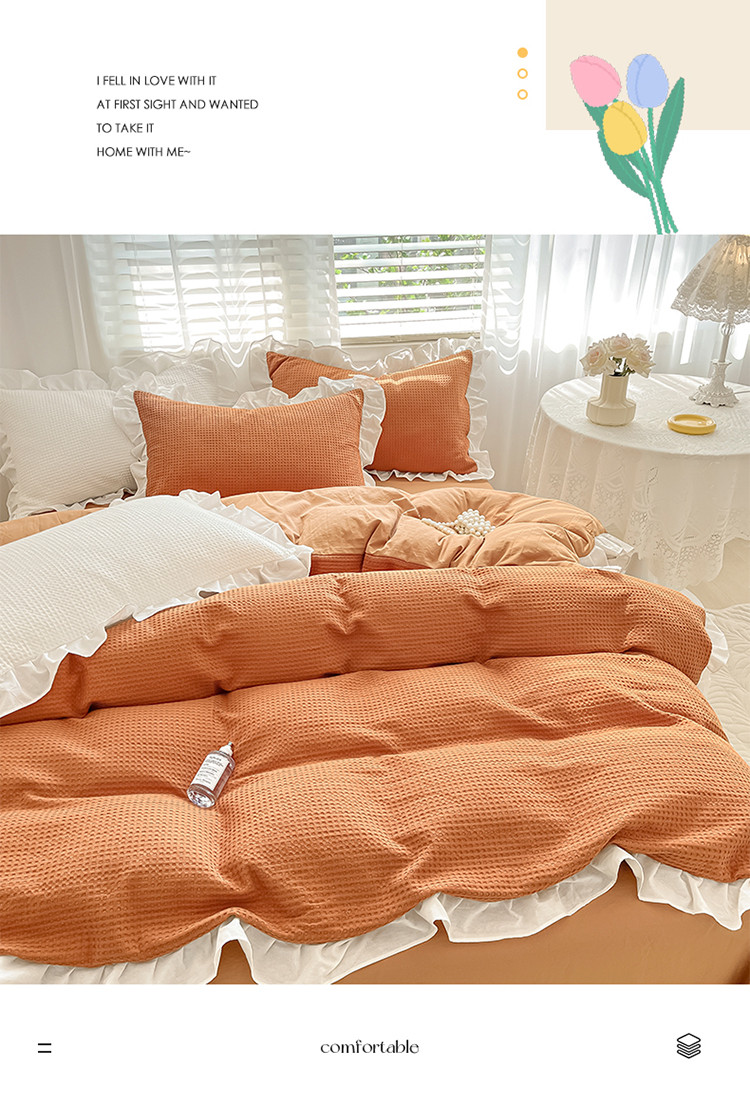 雅居纺家纺 2022新款华夫格花边款四件套 橙色