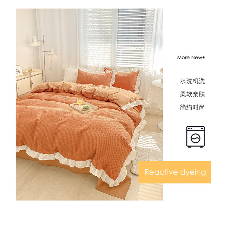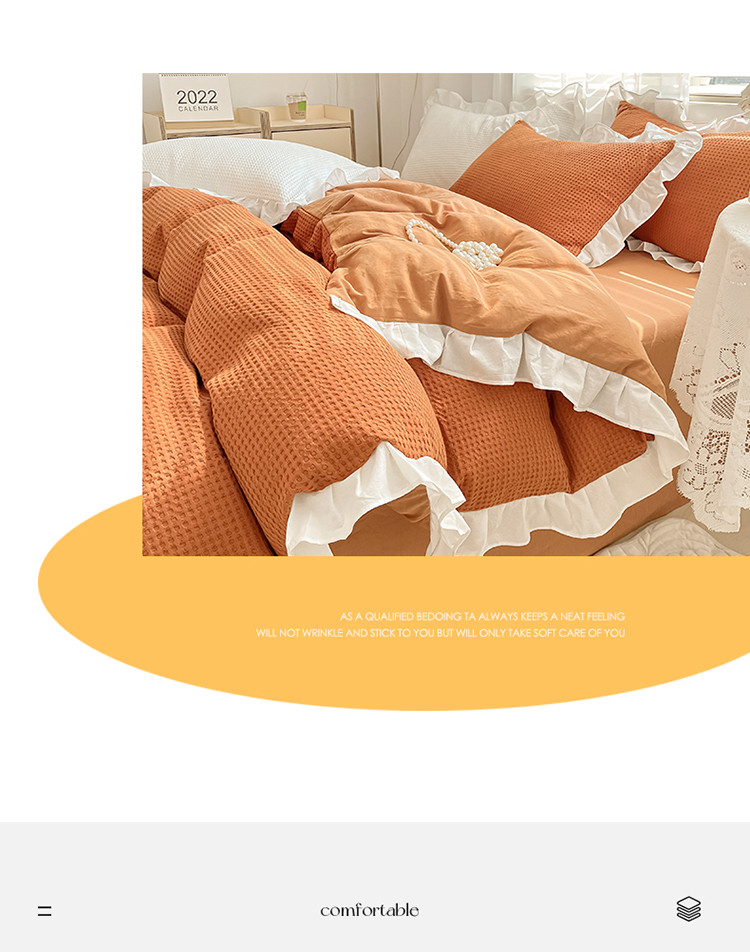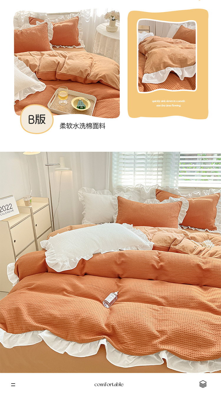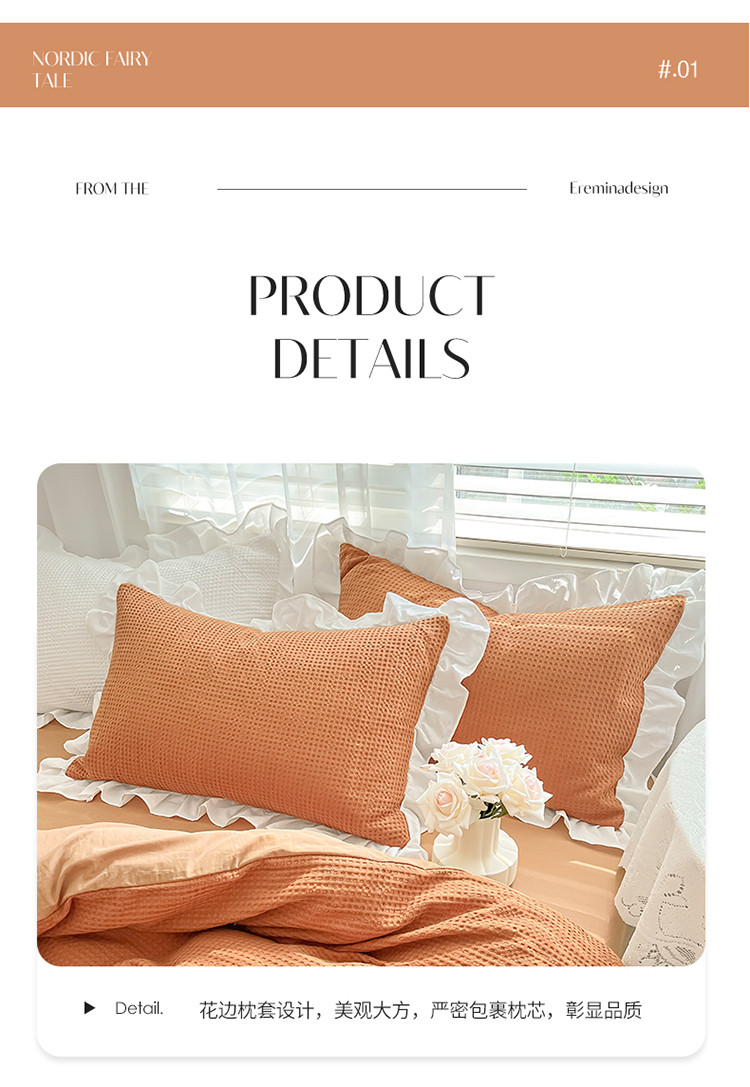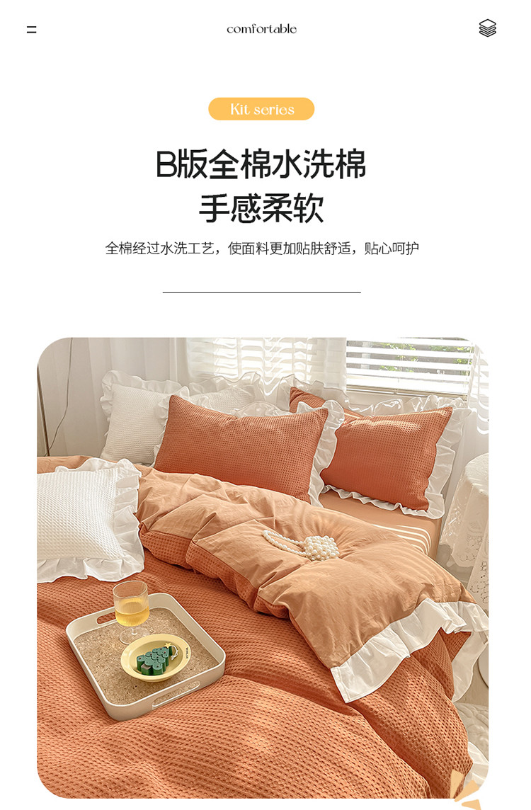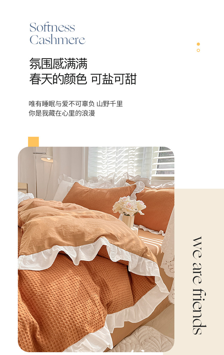 商品名称:雅居纺家纺 2022新款华夫格花边款四件套 橙色