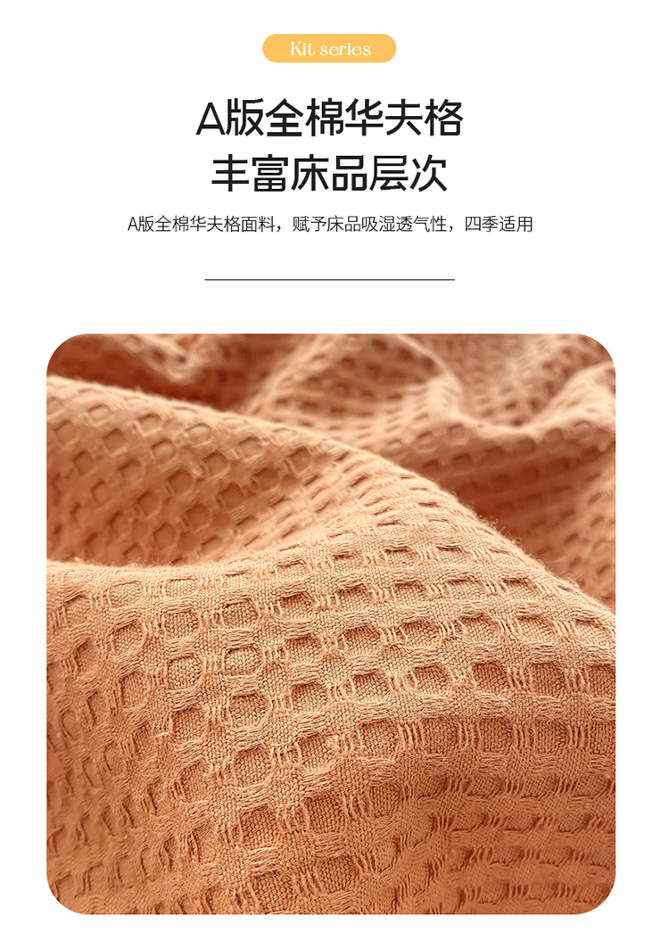 (总)雅居纺家纺 2022新款全棉华夫格普通款四件套,焦糖,米驼,奶油白,柔粉,深灰,雾蓝,月灰