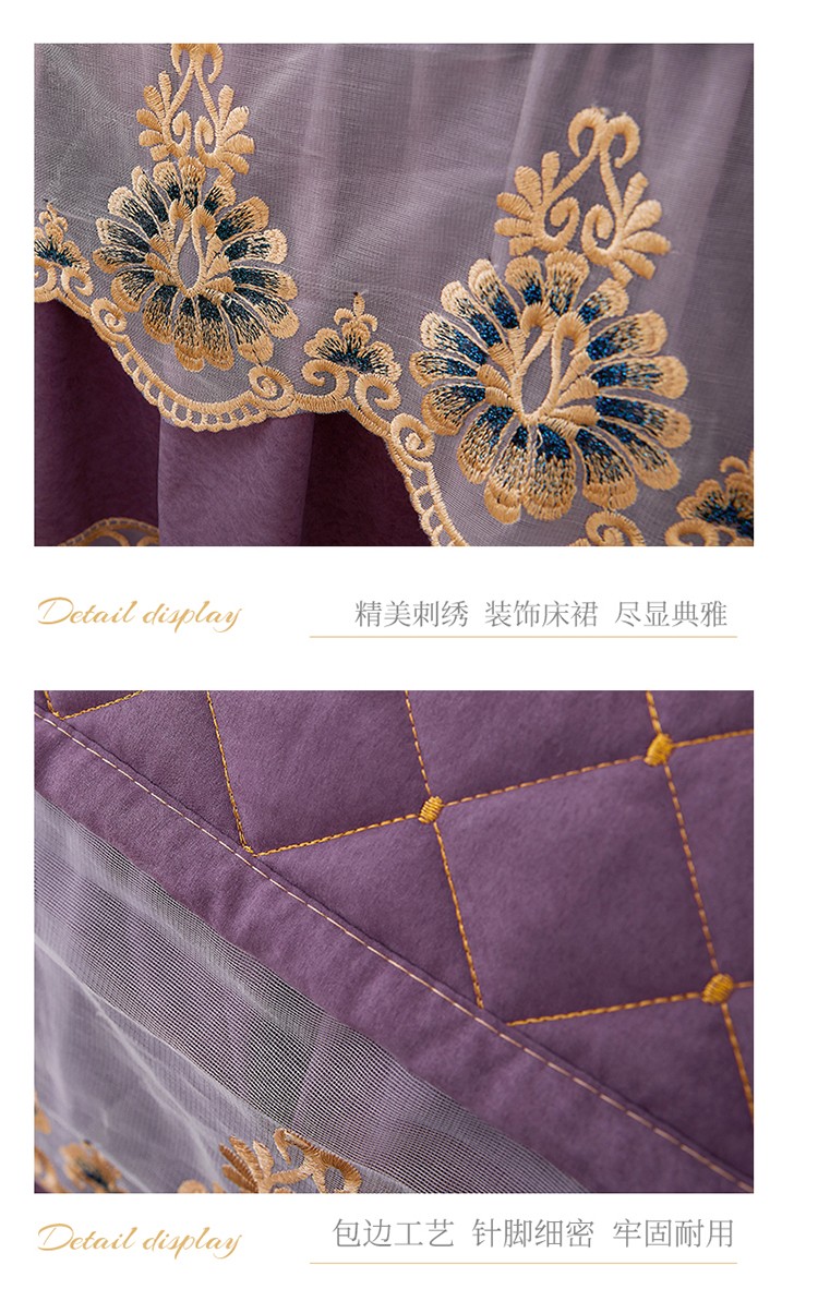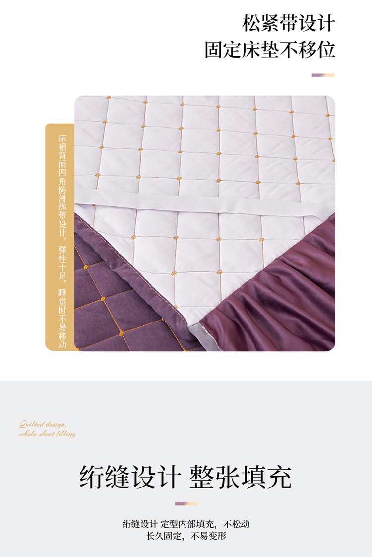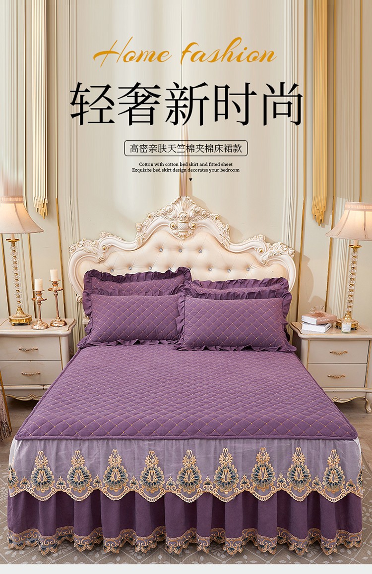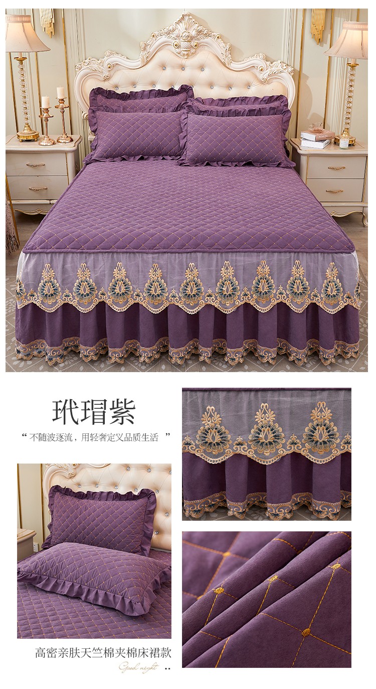 屹成家纺 2024新款天竺棉夹棉床裙 玳瑁紫
