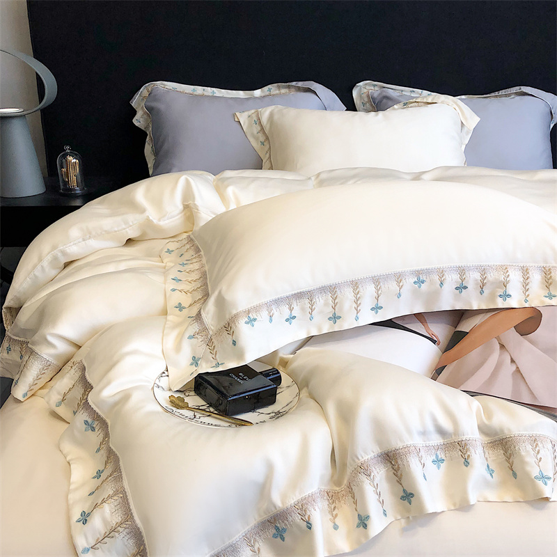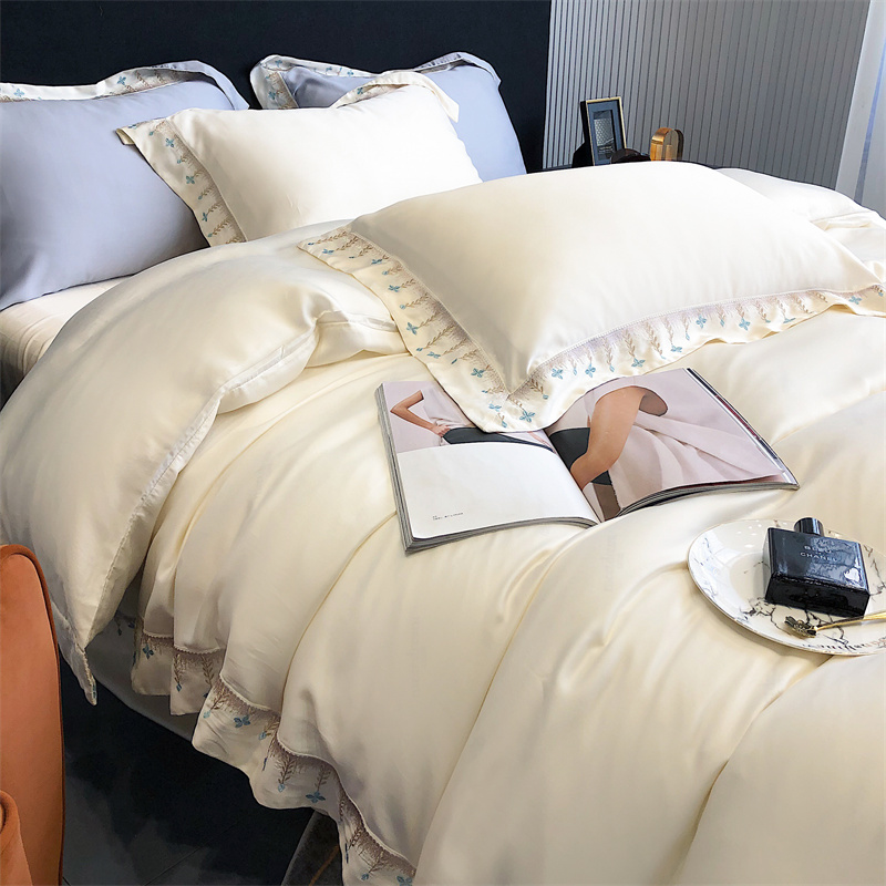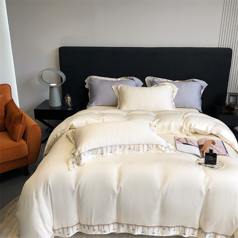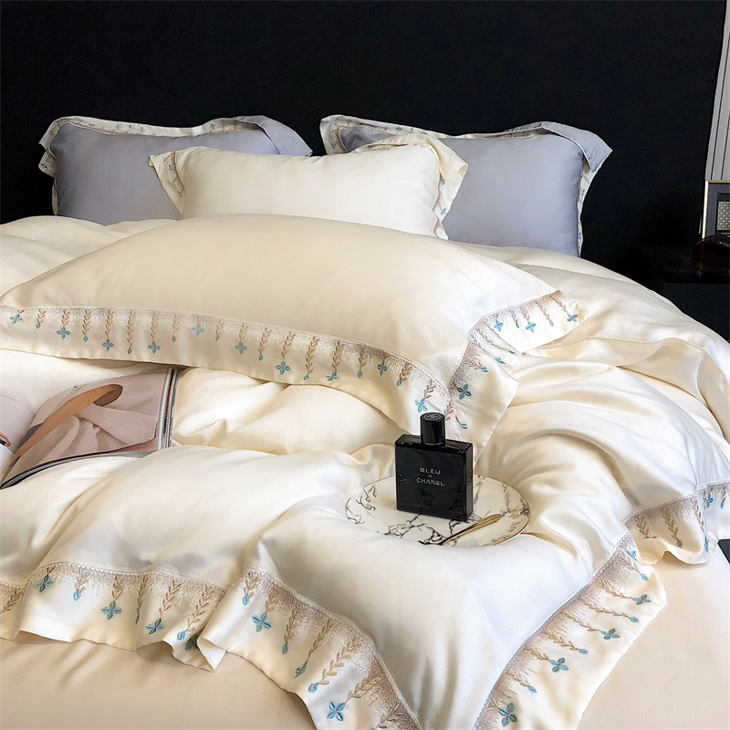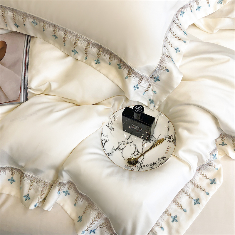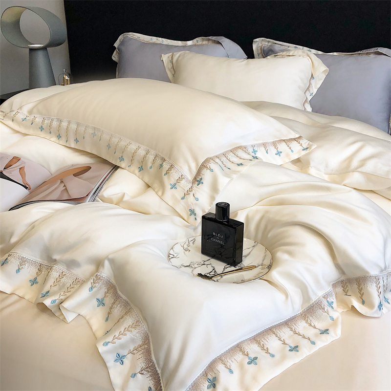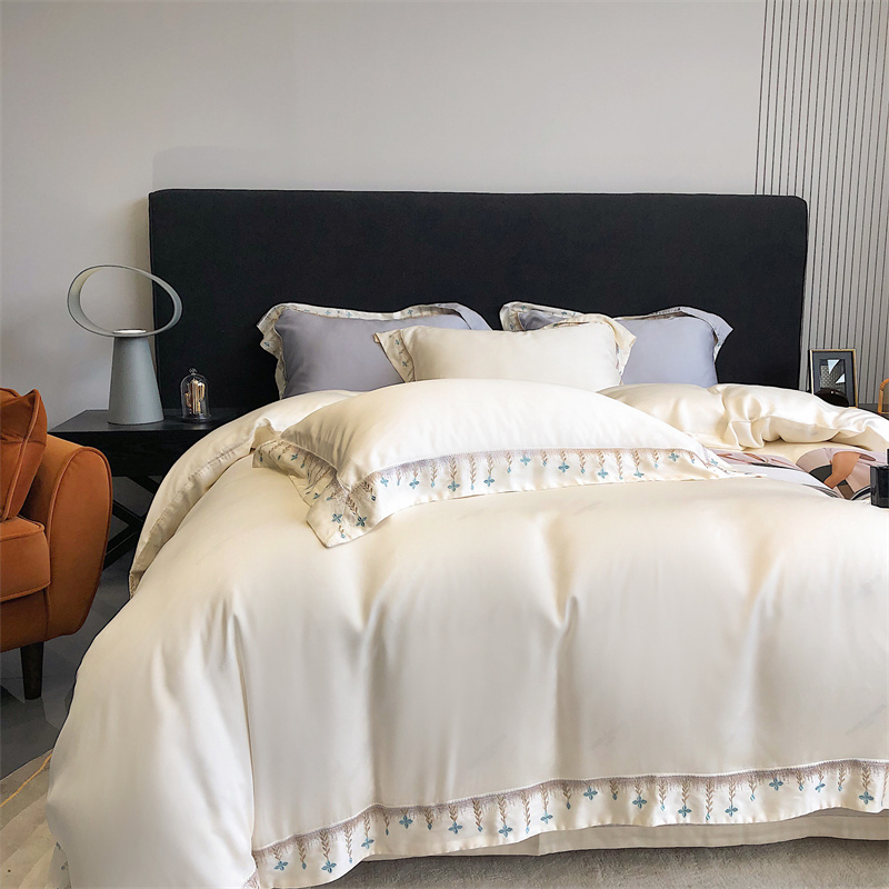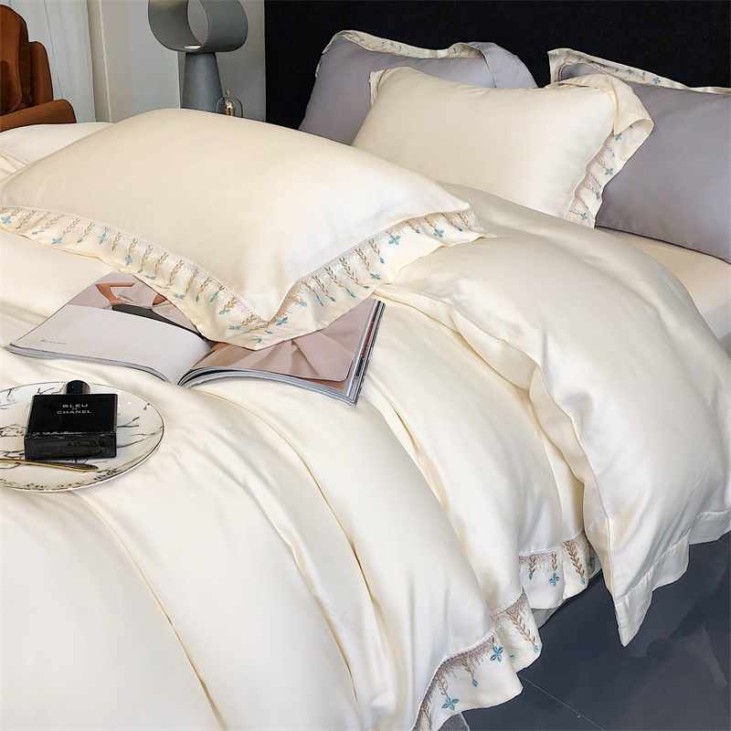 商品名称:馨蕊 2022新款80S兰精天丝刺绣四件套 米拉-元气白桃