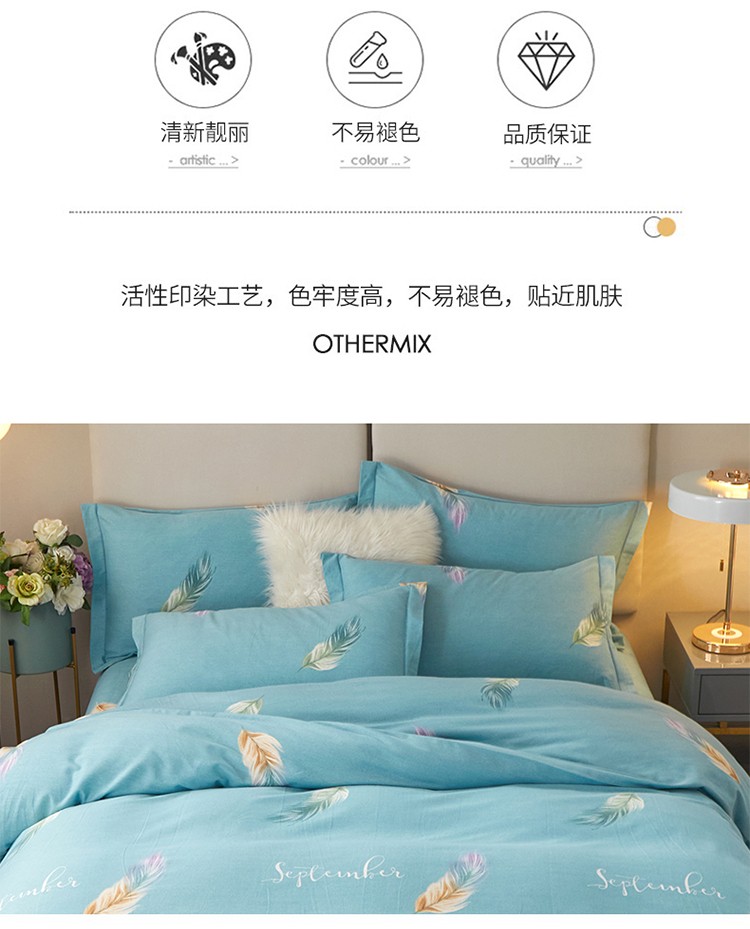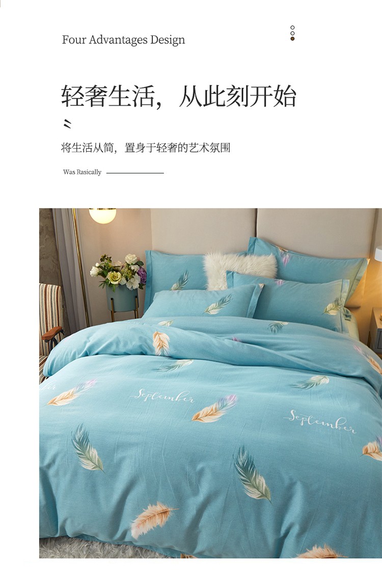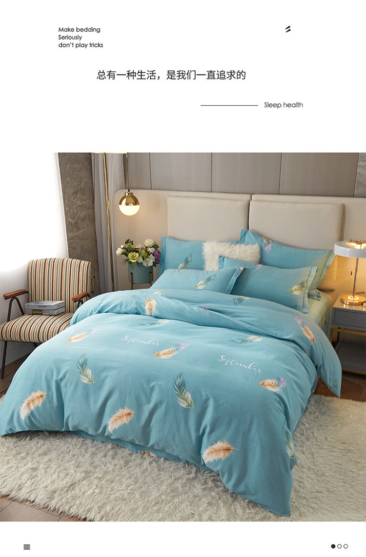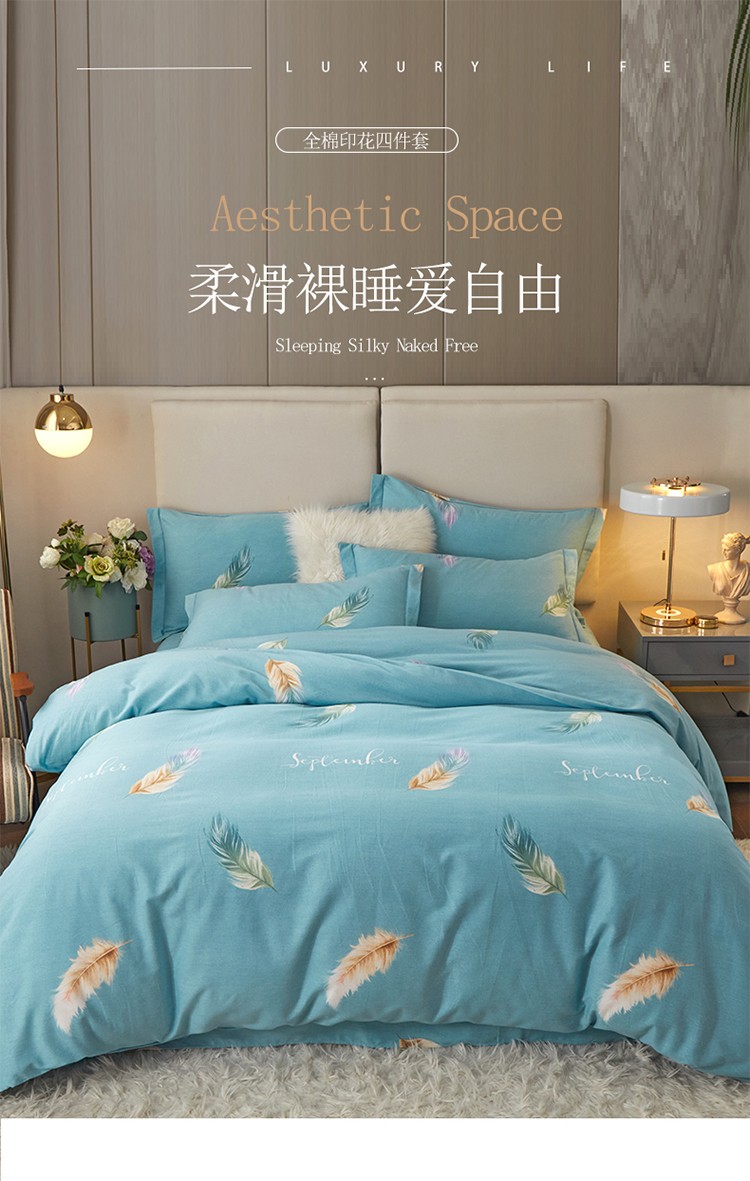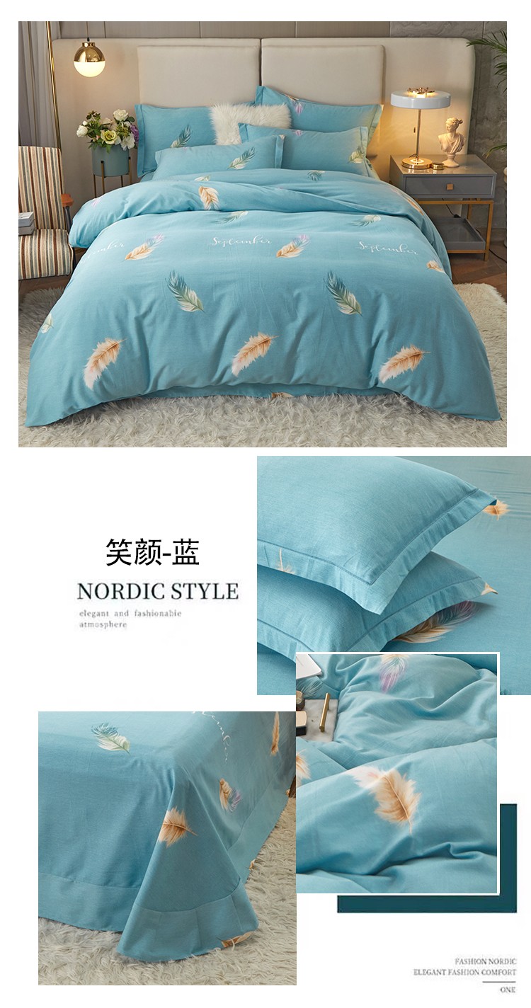 商品名称:金纱玉纺 2022新款全棉印花加厚磨毛四件套 笑颜-蓝