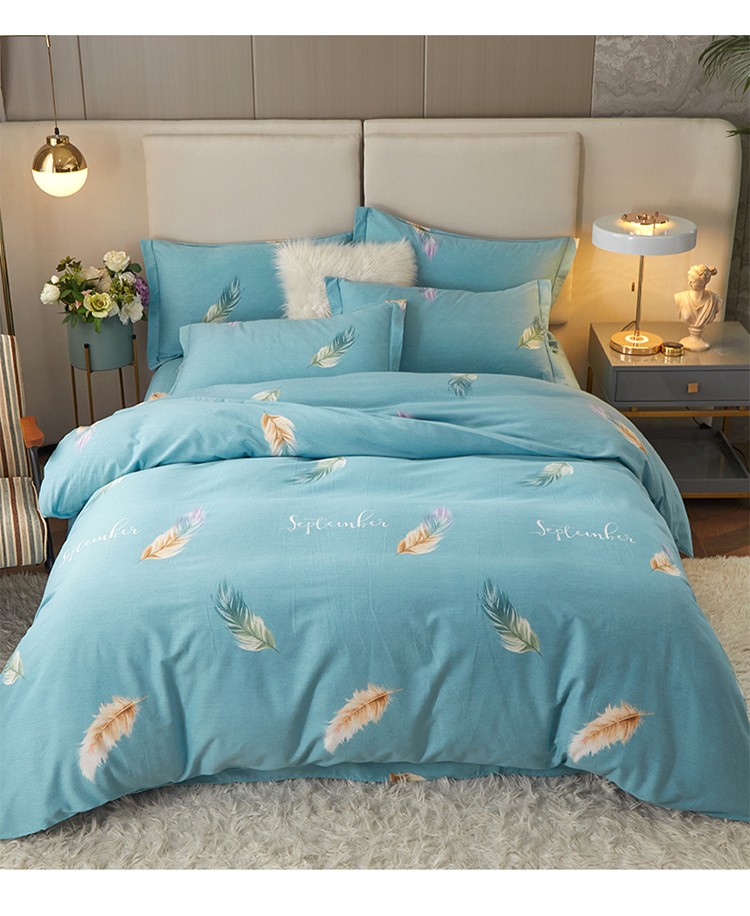 金纱玉纺 2022新款全棉印花加厚磨毛四件套 笑颜-蓝