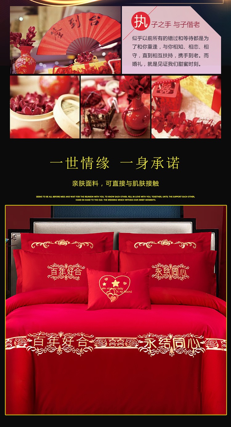 当前位置: 91家纺网 > 商品网购 > 床品套件 > 多件套 > 多件套 > 婚庆四件套大红色刺绣结婚六七件套多件套喜庆婚礼婚被床上用品 百年同心