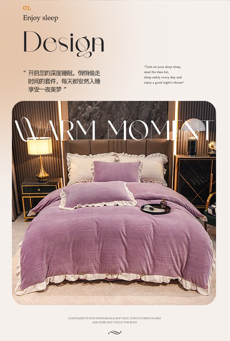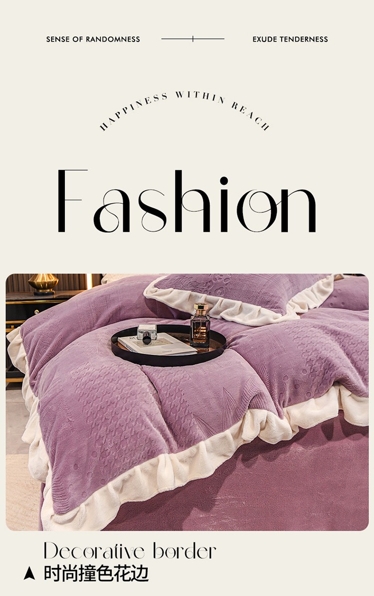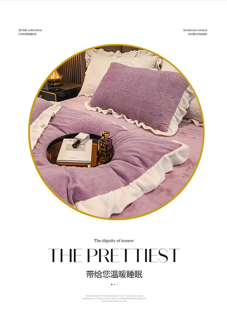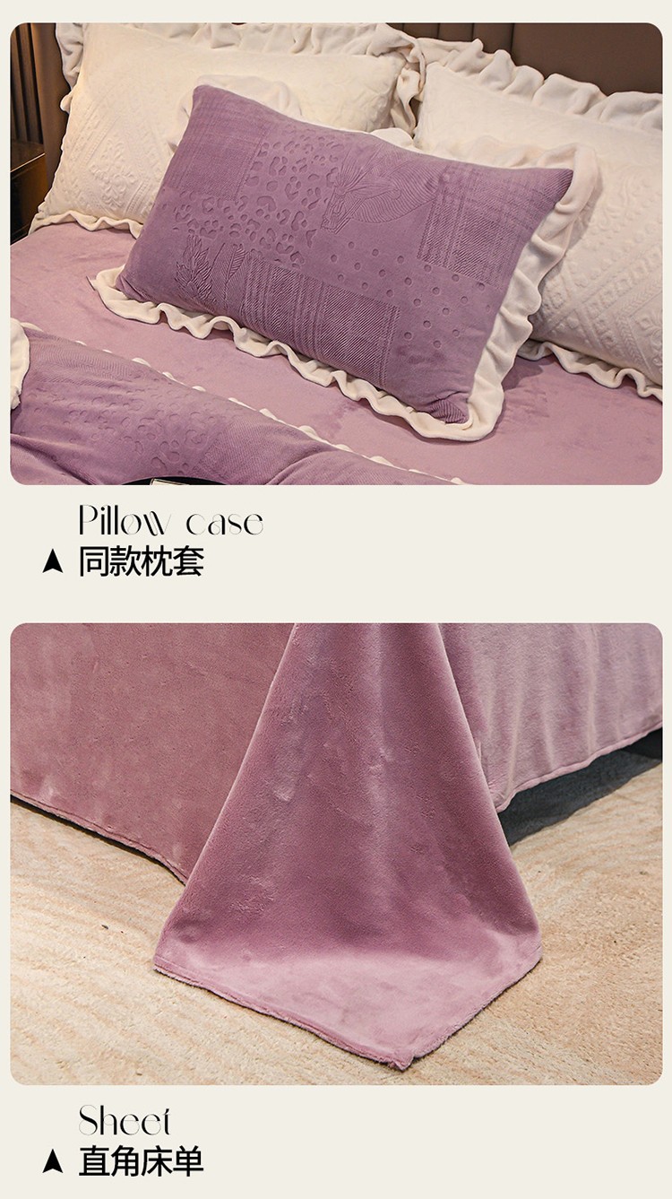 珺柔 2022新款220高克重牛奶绒雕花时尚花边款四件套 悦薇(紫)
