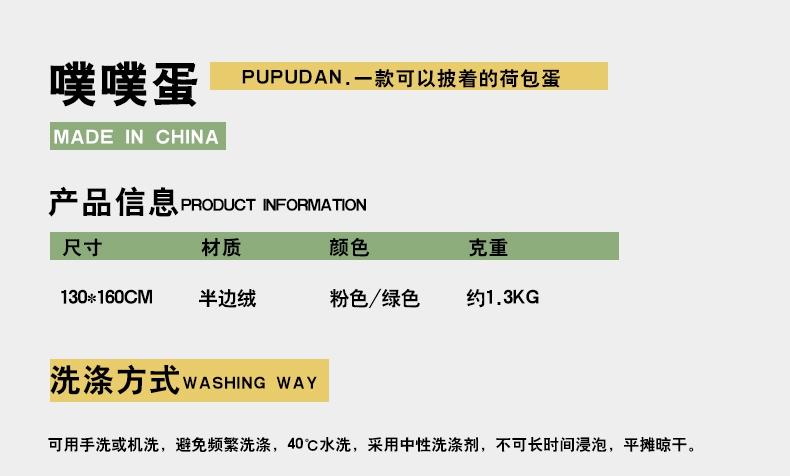 商品名称:暖绵绵 全棉针织棉毛毯毯子噗噗蛋 绿色