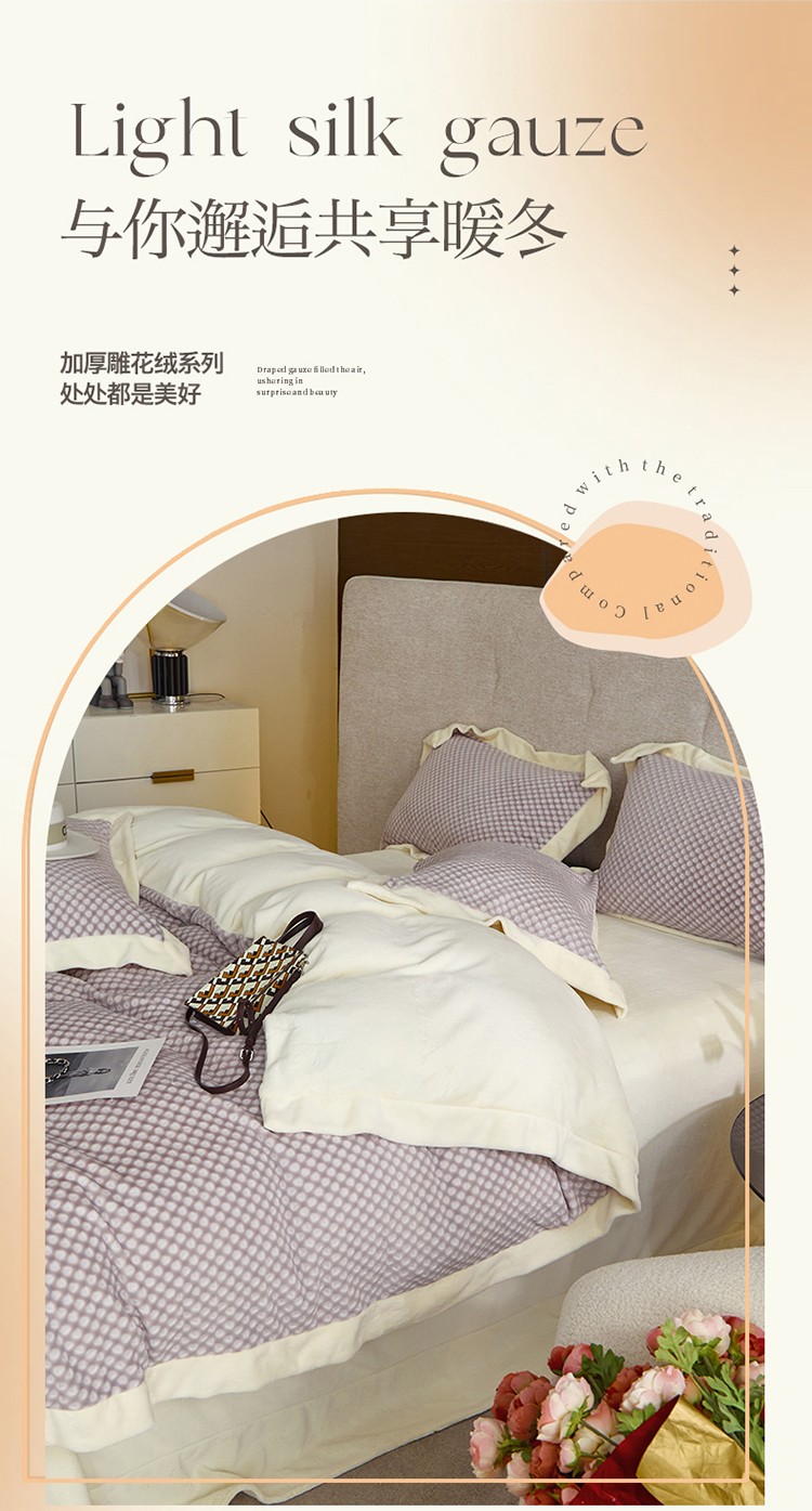 名品优仓 2022新款加厚雕花绒系列四件套-都市生活 浅灰