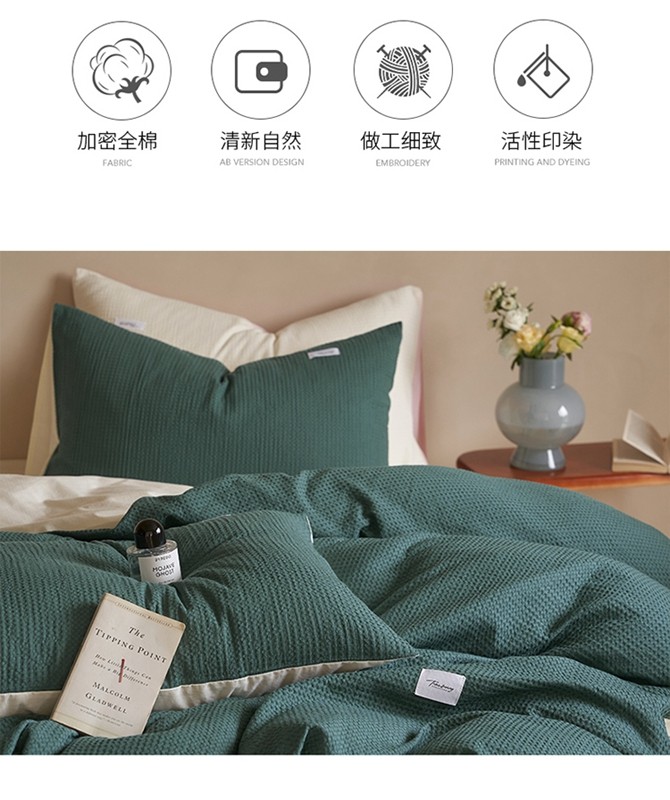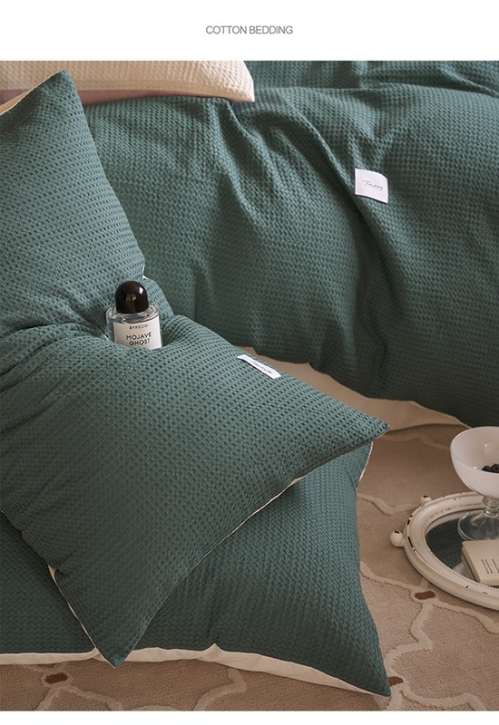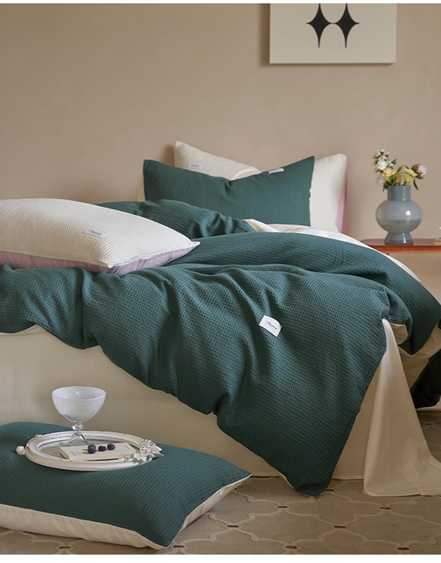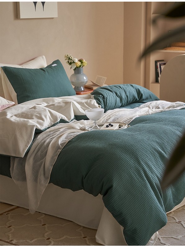 当前位置: 91家纺网 > 商品网购 > 床品套件 > 四件套 > 全棉普通四件套 > 时光里 2022新款60支纯棉华夫格系列四件套 黛绿拼嫩黄