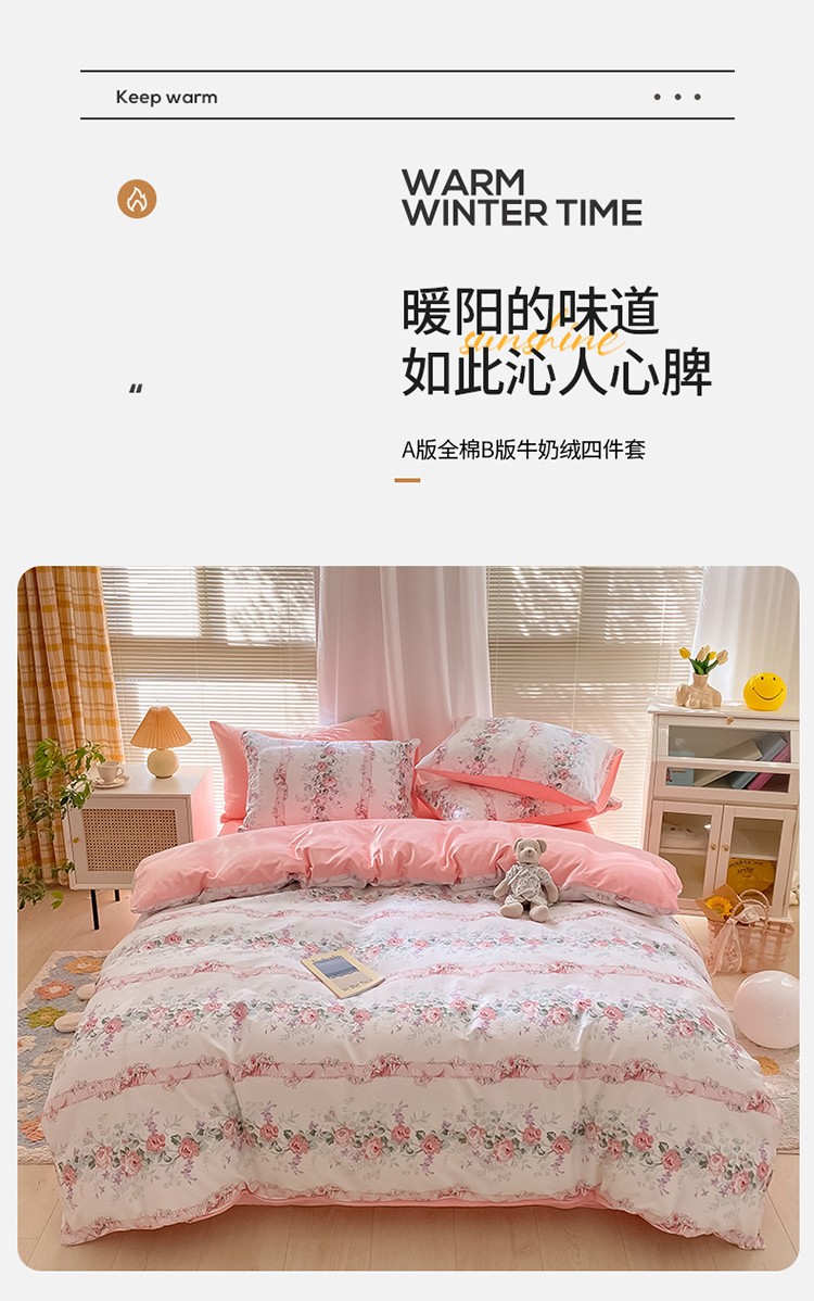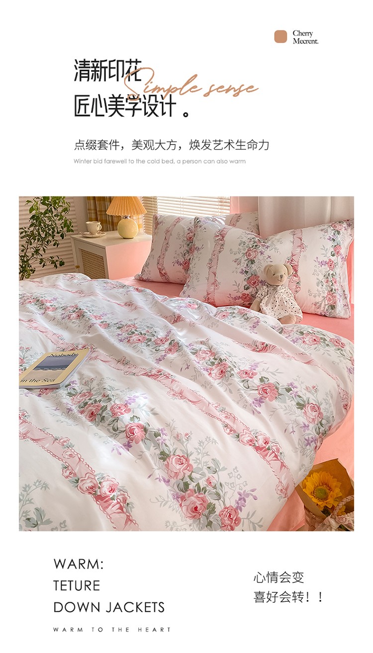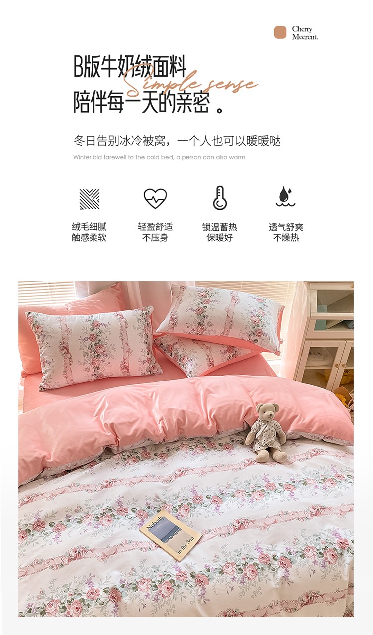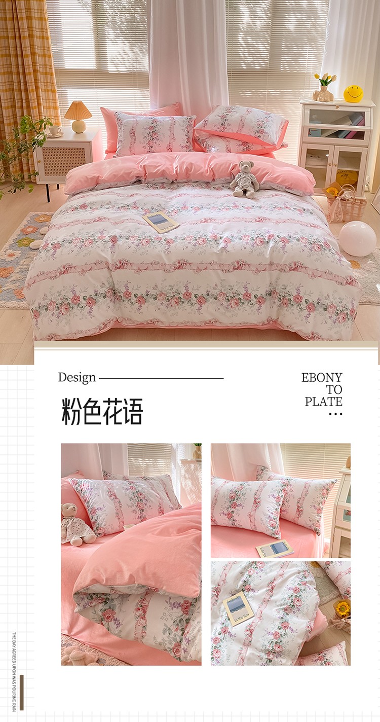商品名称:雅居纺 2022新款棉绒四件套 粉色花语