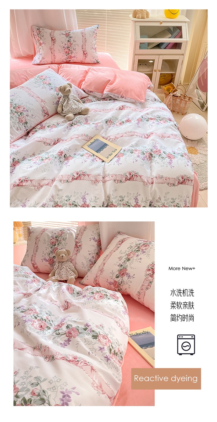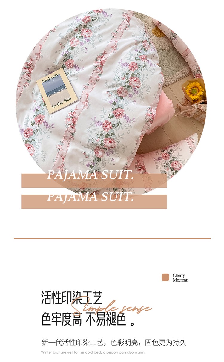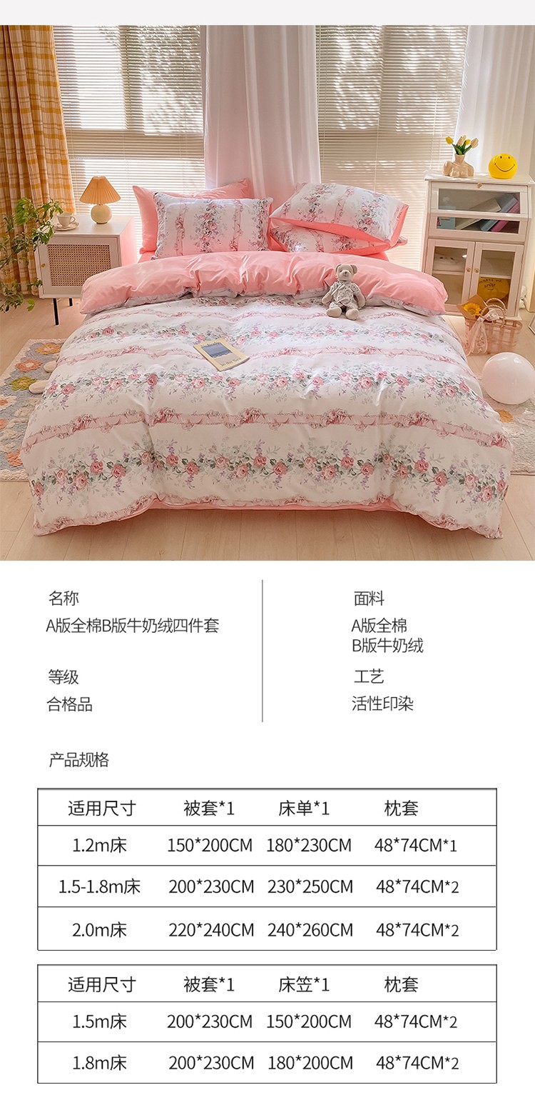商品名称:雅居纺 2022新款棉绒四件套 粉色花语