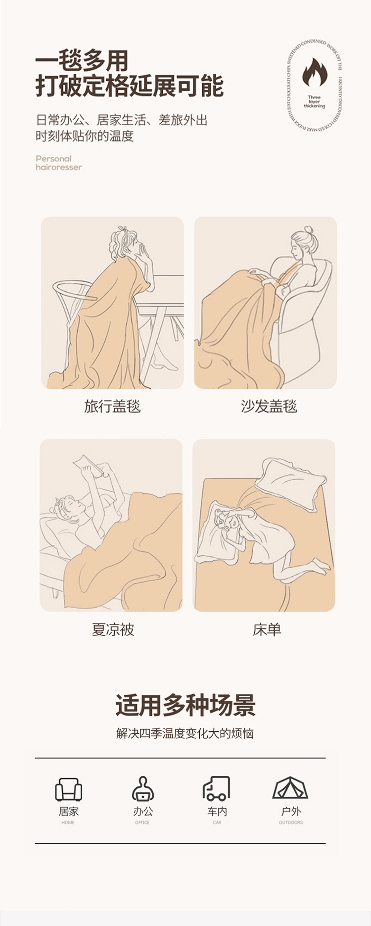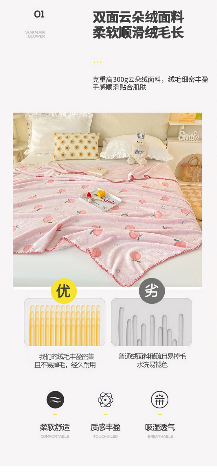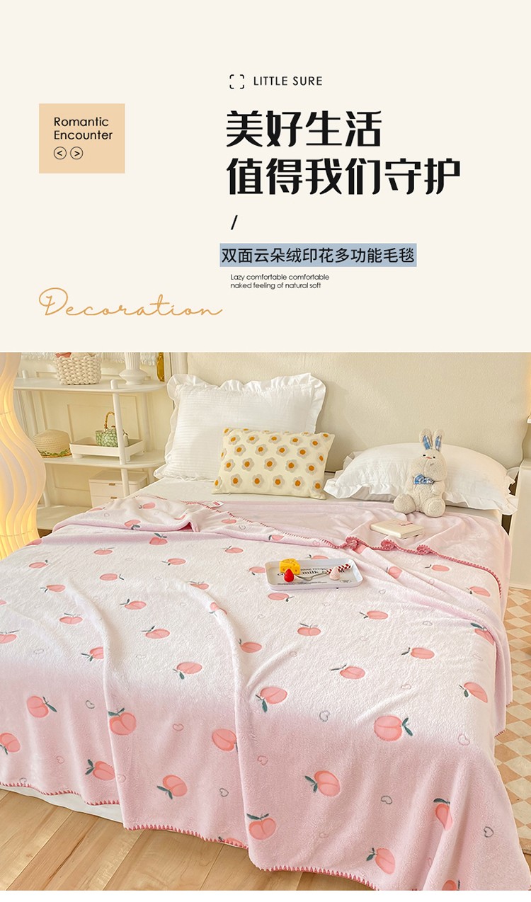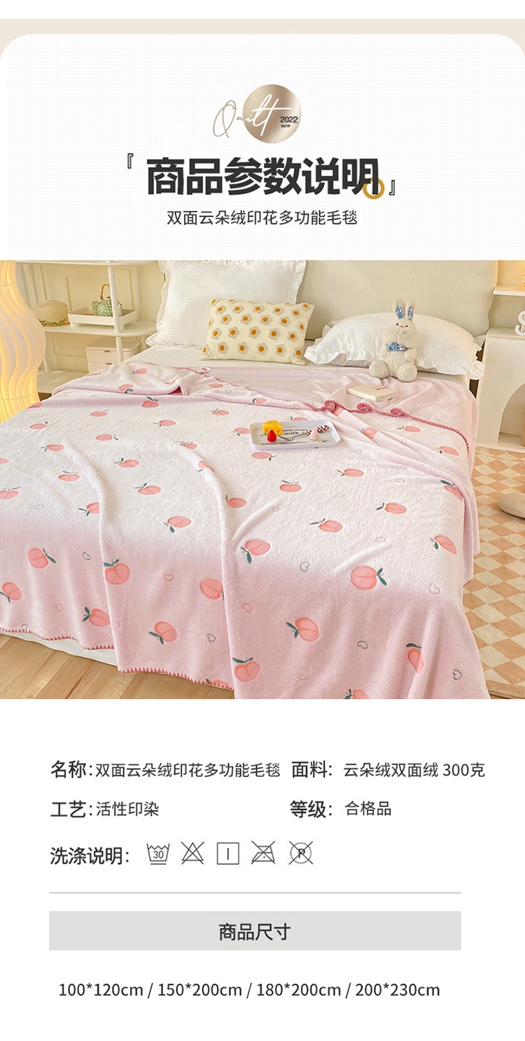商品名称:大米家居 2023新款云朵绒多功能毛毯 元気桃桃