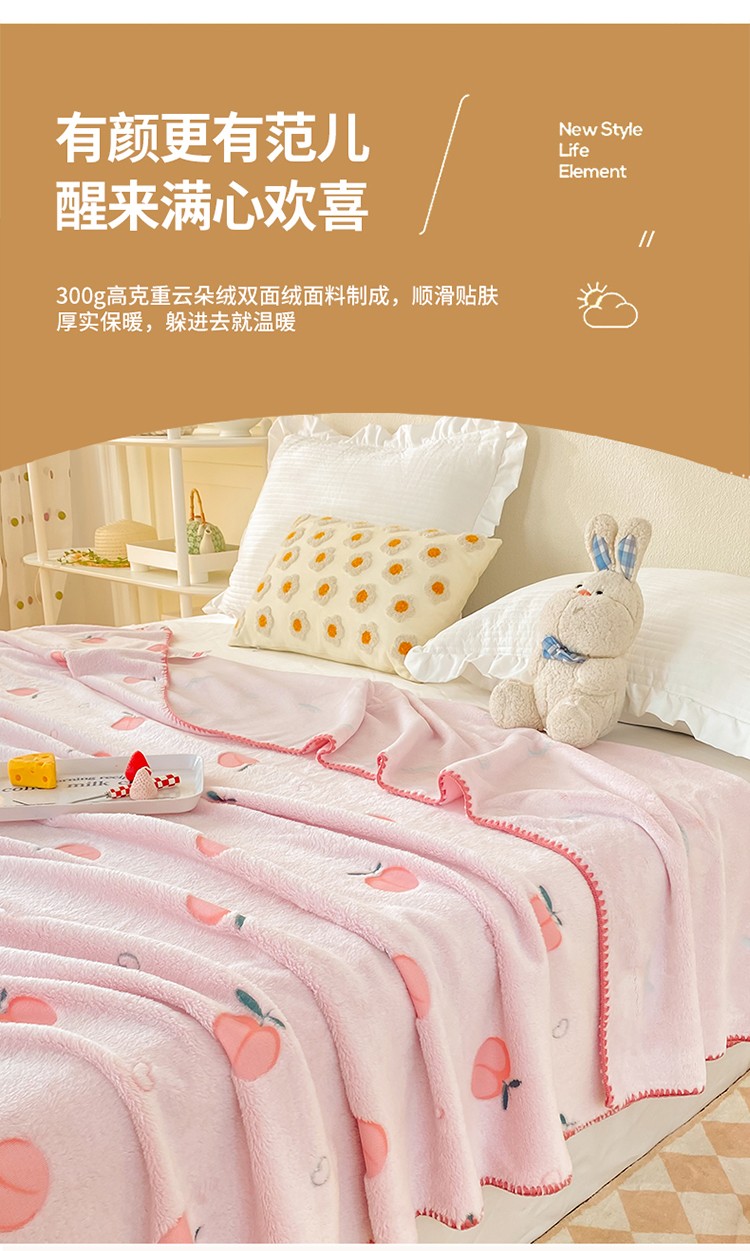 大米家居 2023新款云朵绒多功能毛毯 元気桃桃