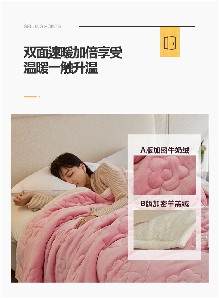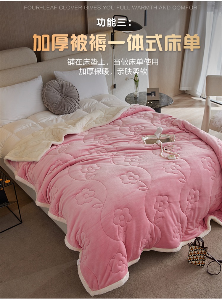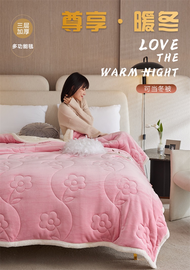 铭动 新款三层加厚加绒牛奶绒羊羔绒珊瑚绒保暖冬季毛毯-嫩粉