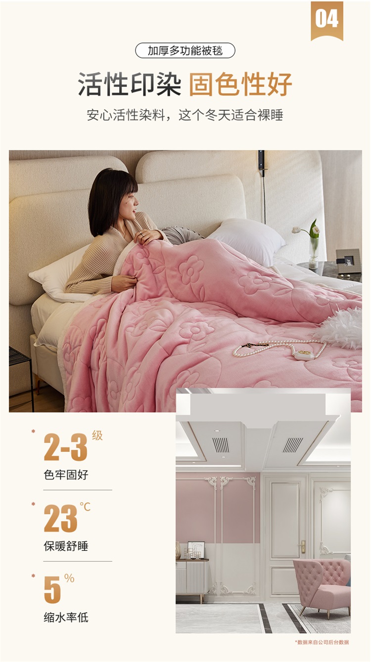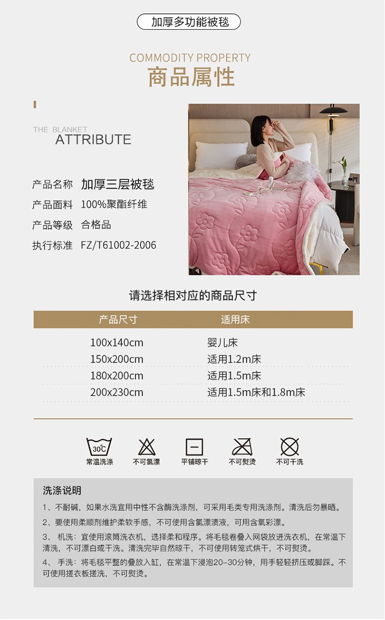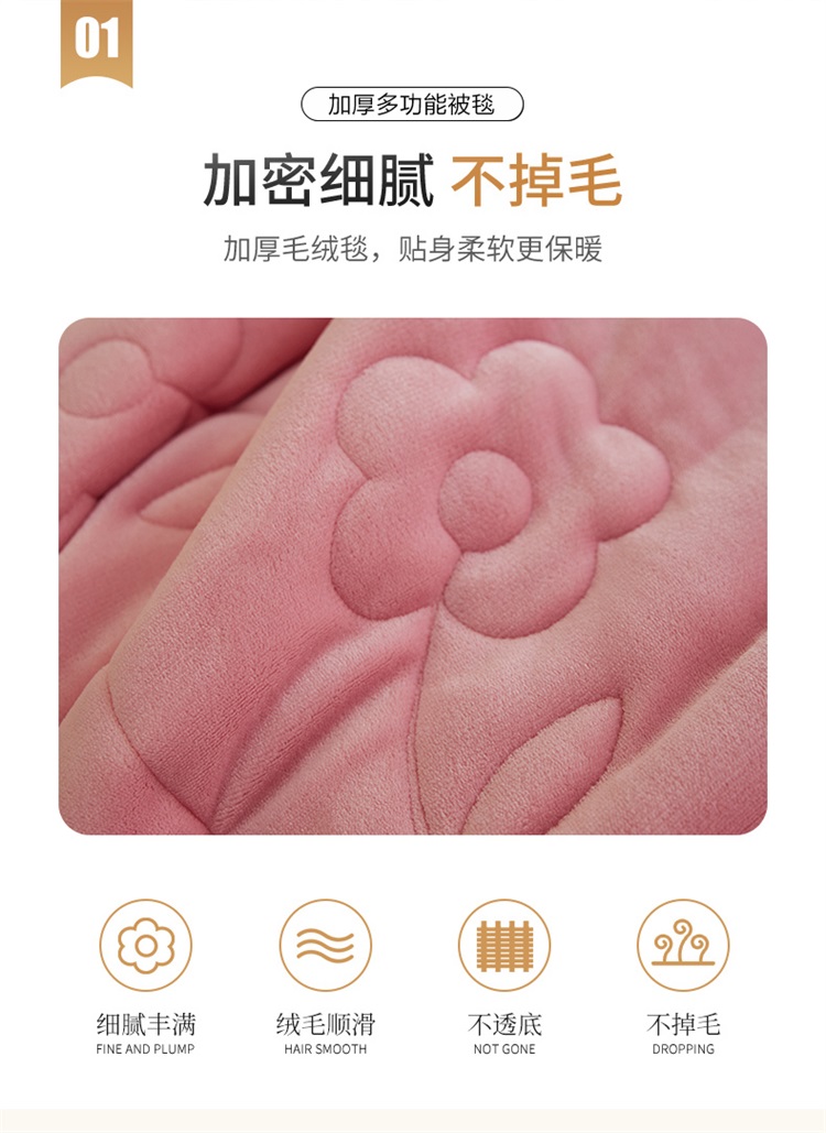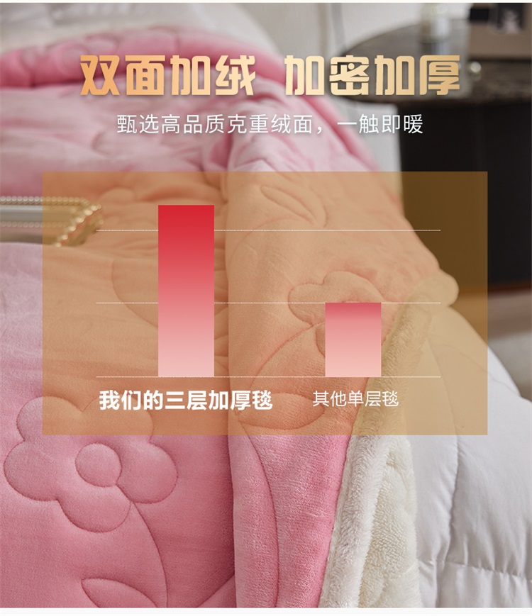 商品名称:铭动 新款三层加厚加绒牛奶绒羊羔绒珊瑚绒保暖冬季毛毯-嫩粉