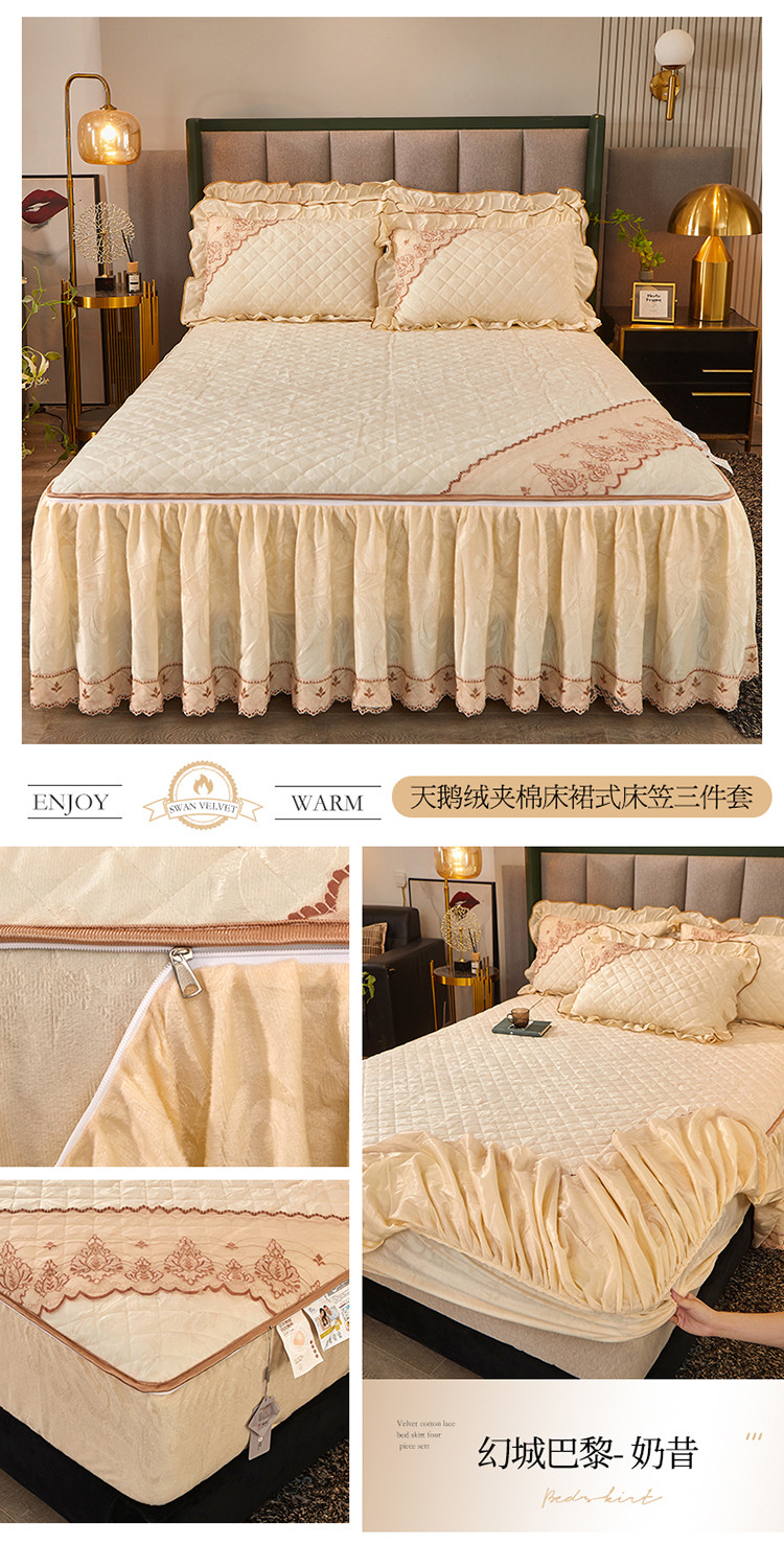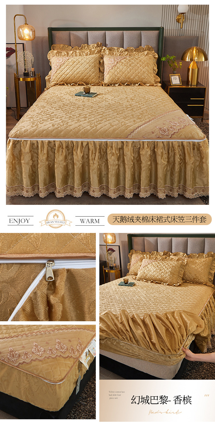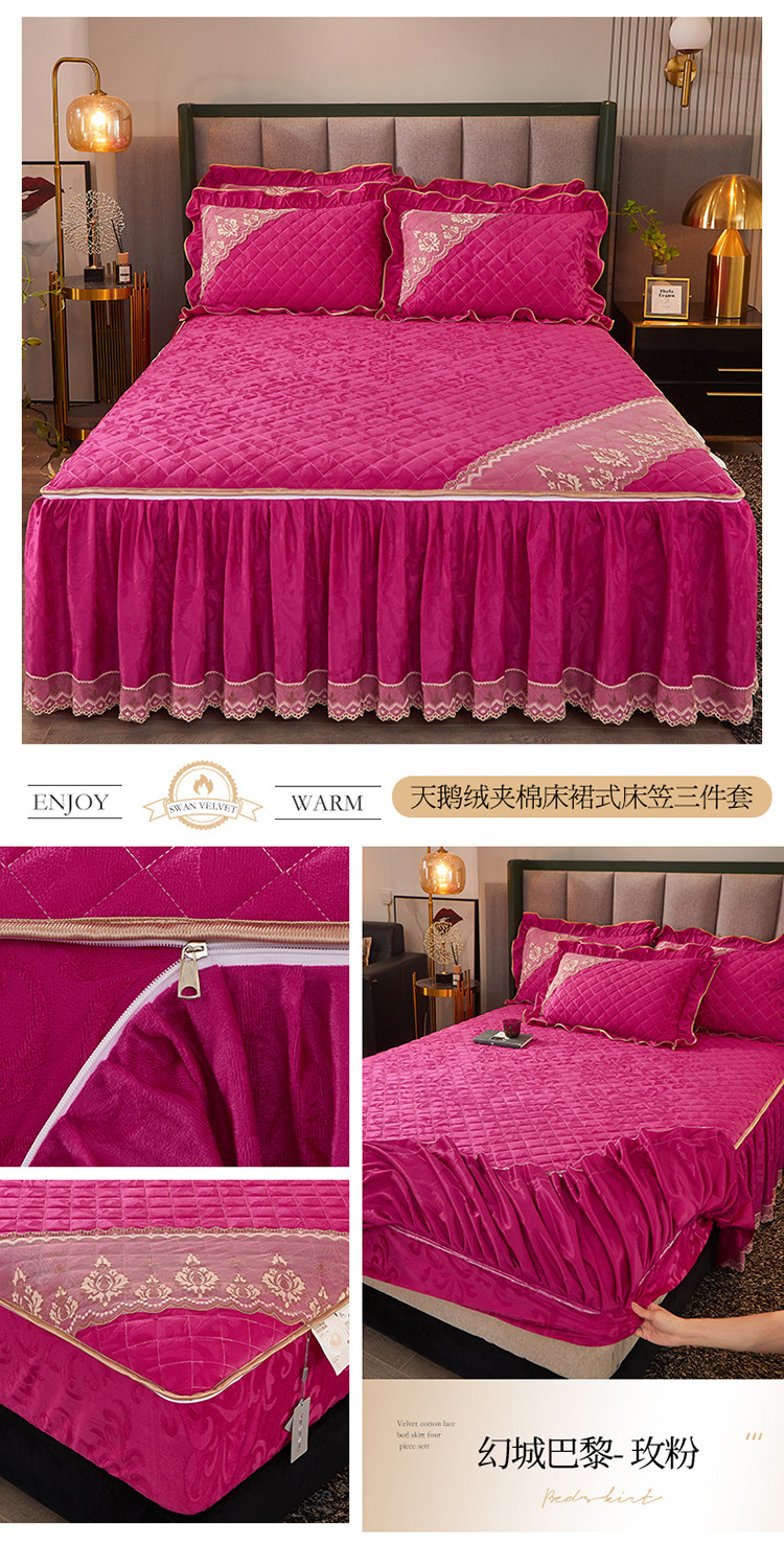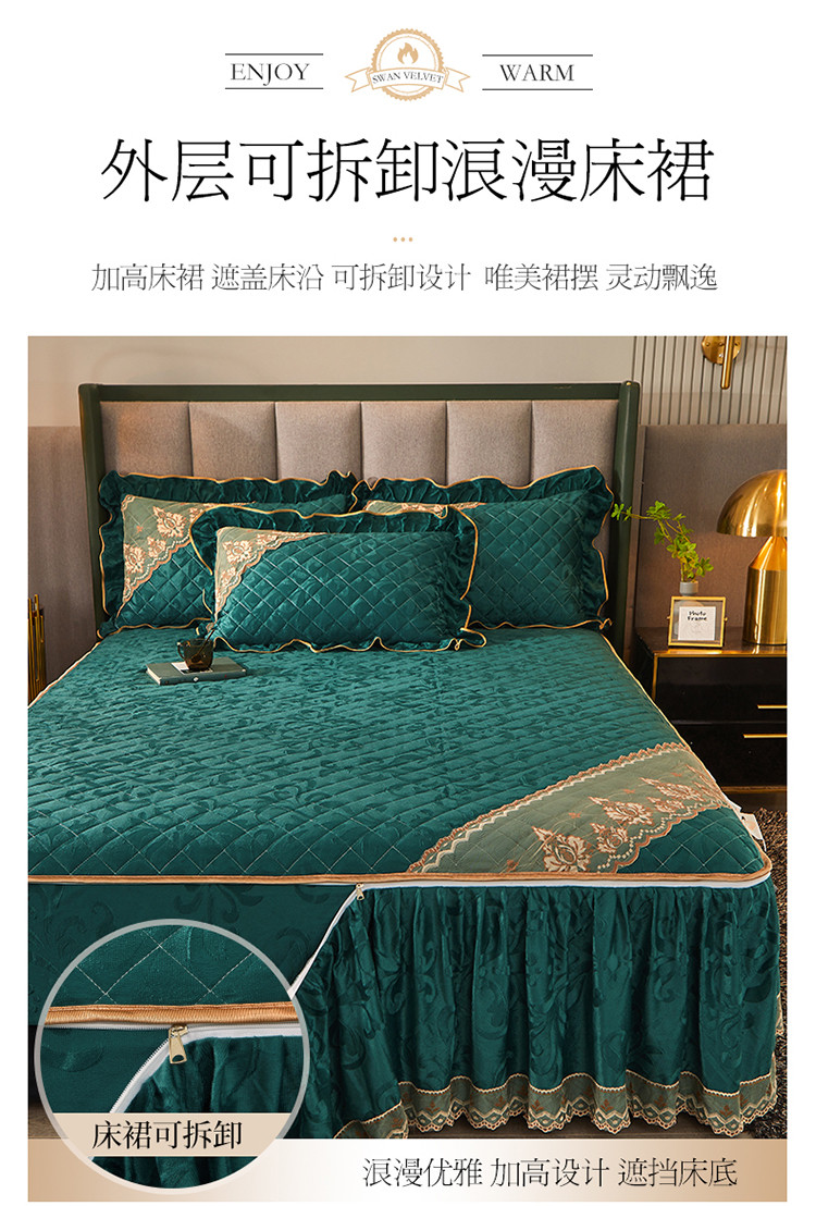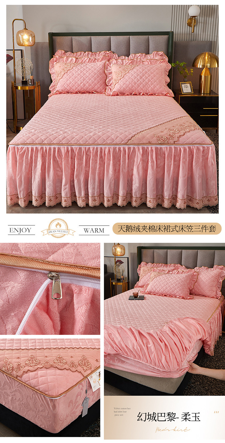 (总)网红馆 2025新品天鹅绒夹棉床裙三件套