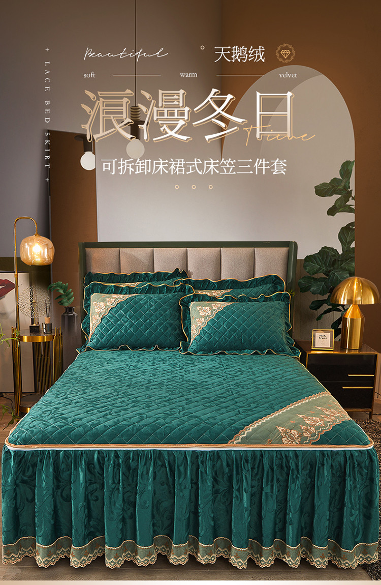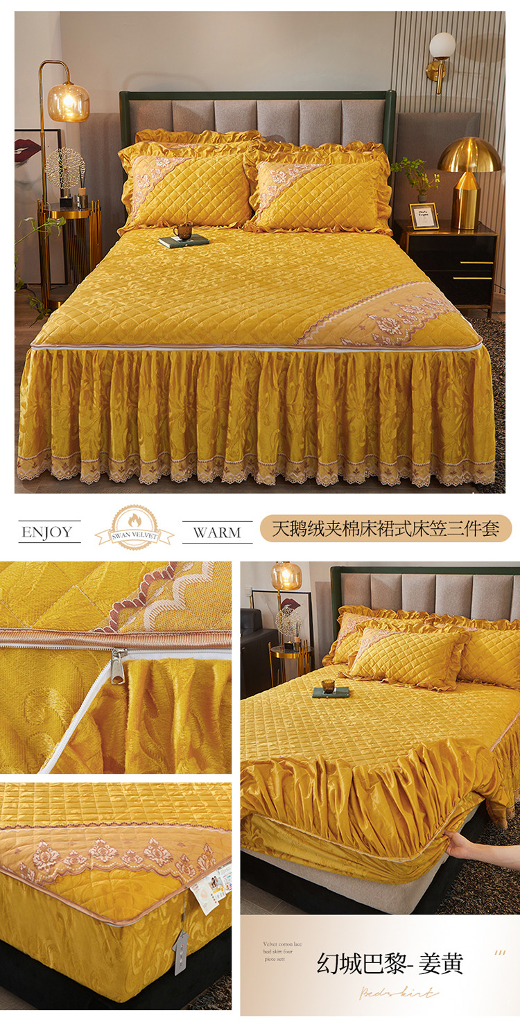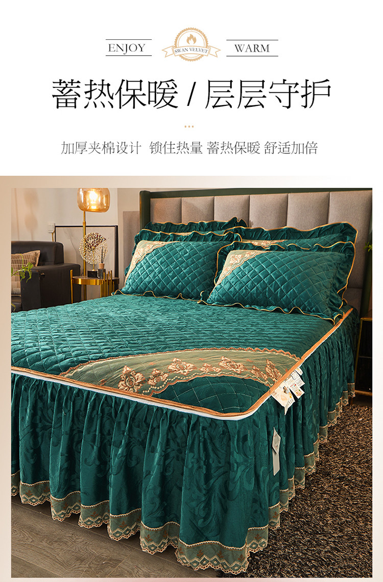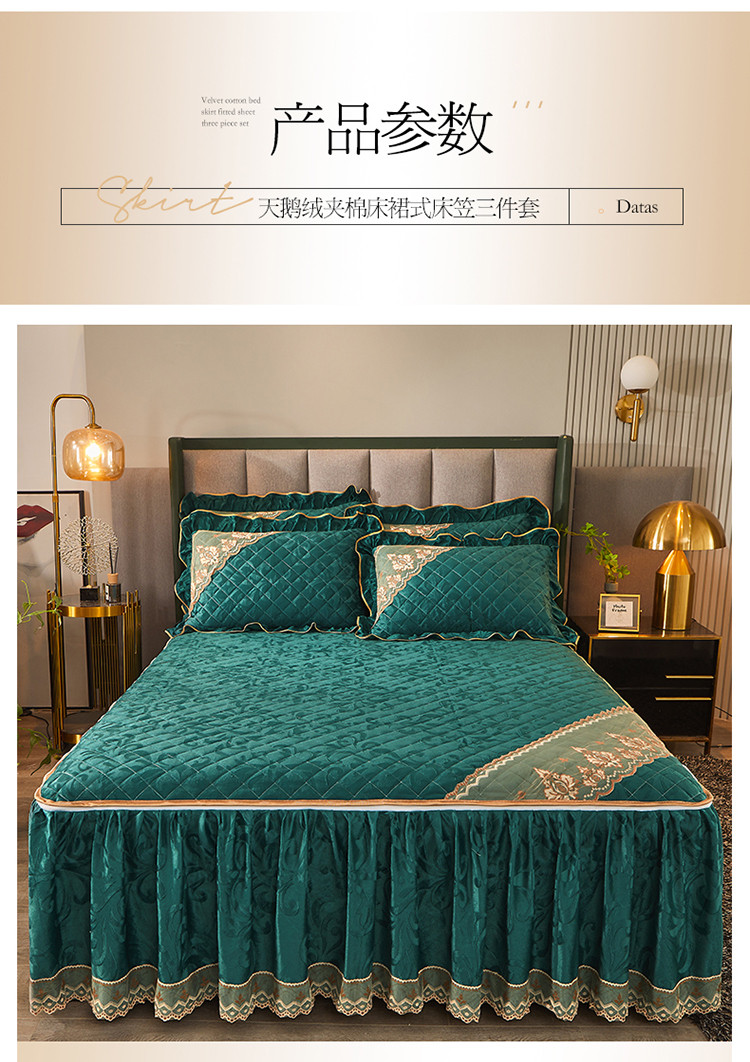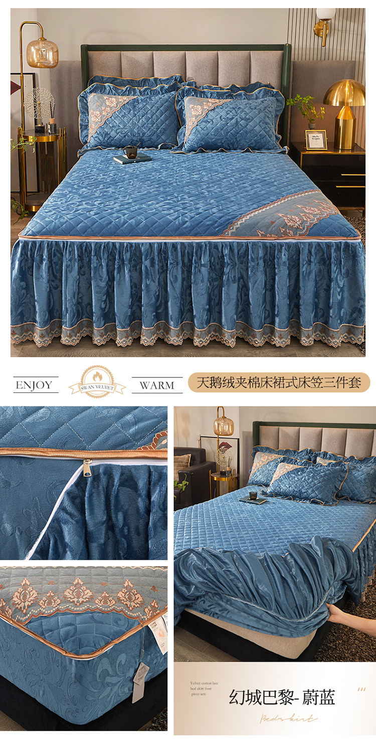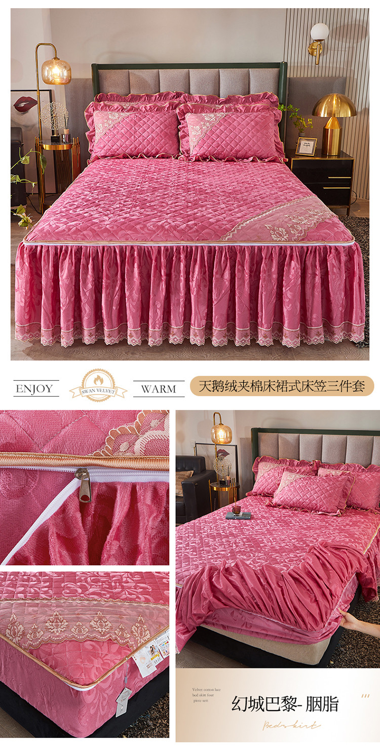 (总)网红馆 2025新品天鹅绒夹棉床裙三件套