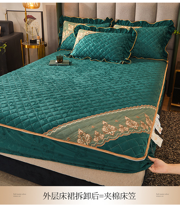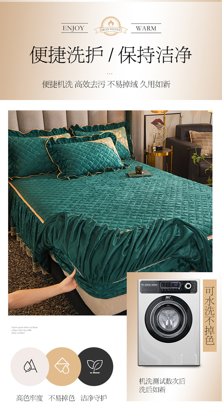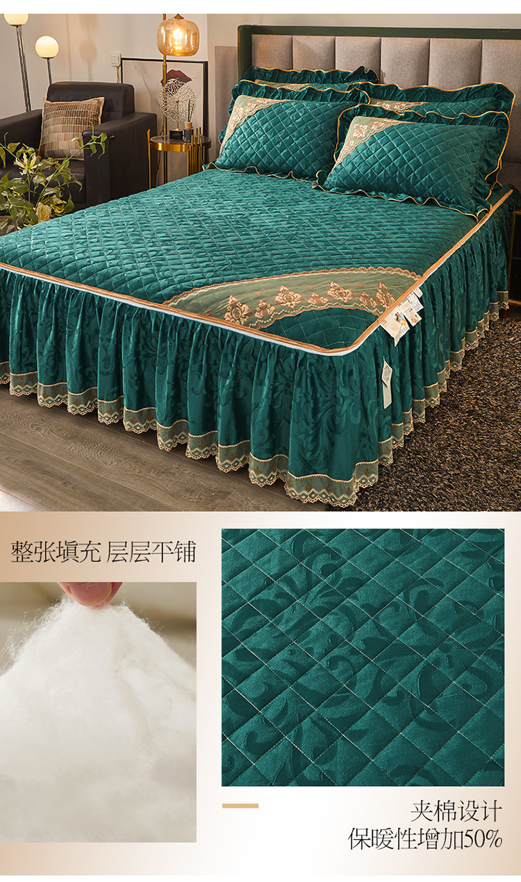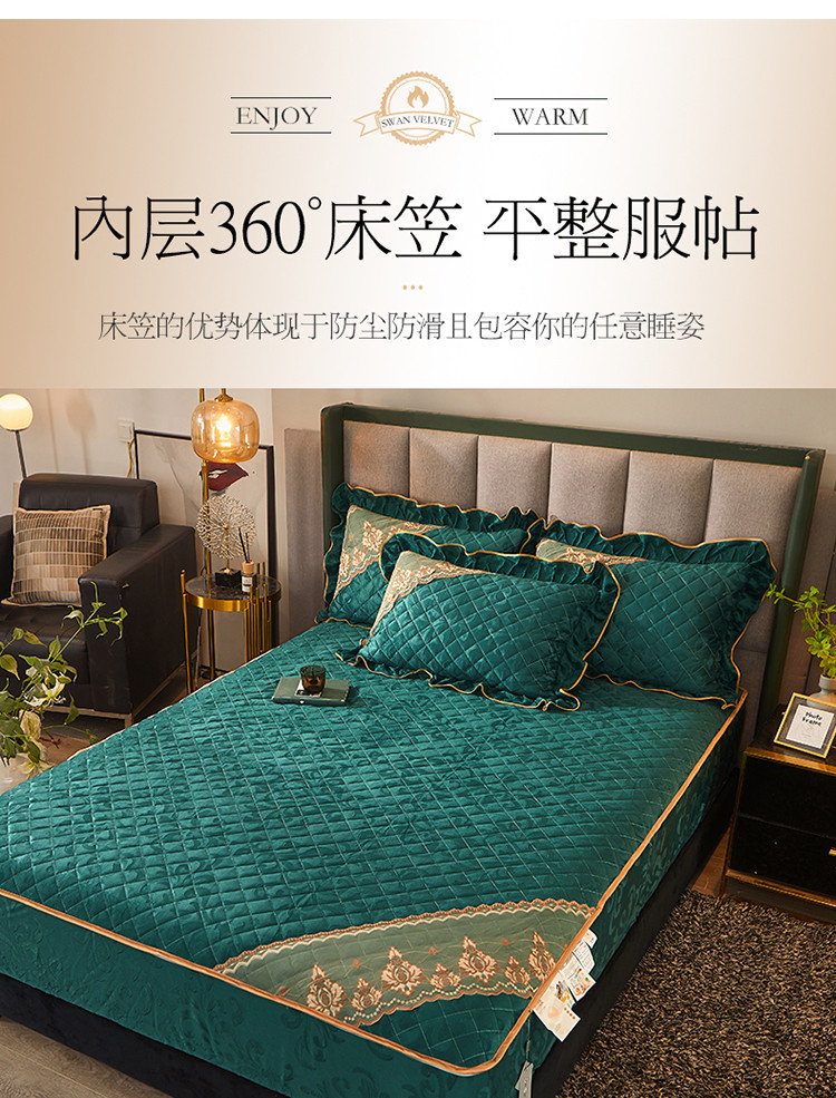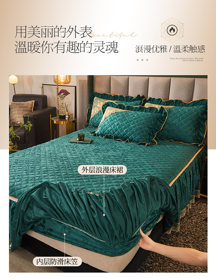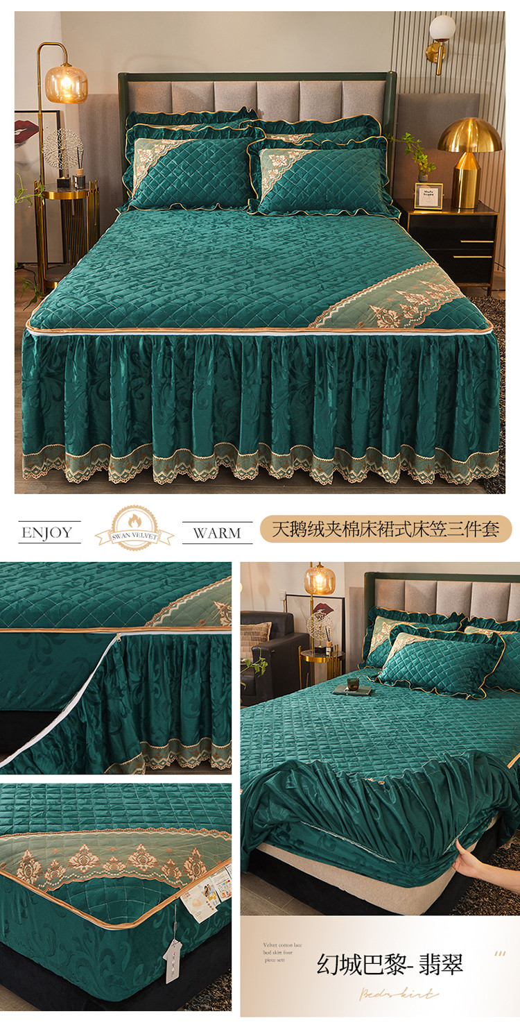 (总)网红馆 2025新品天鹅绒夹棉床裙三件套
