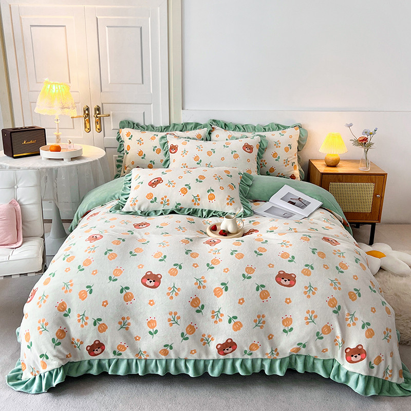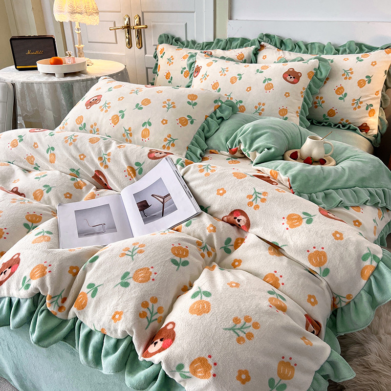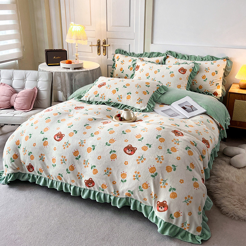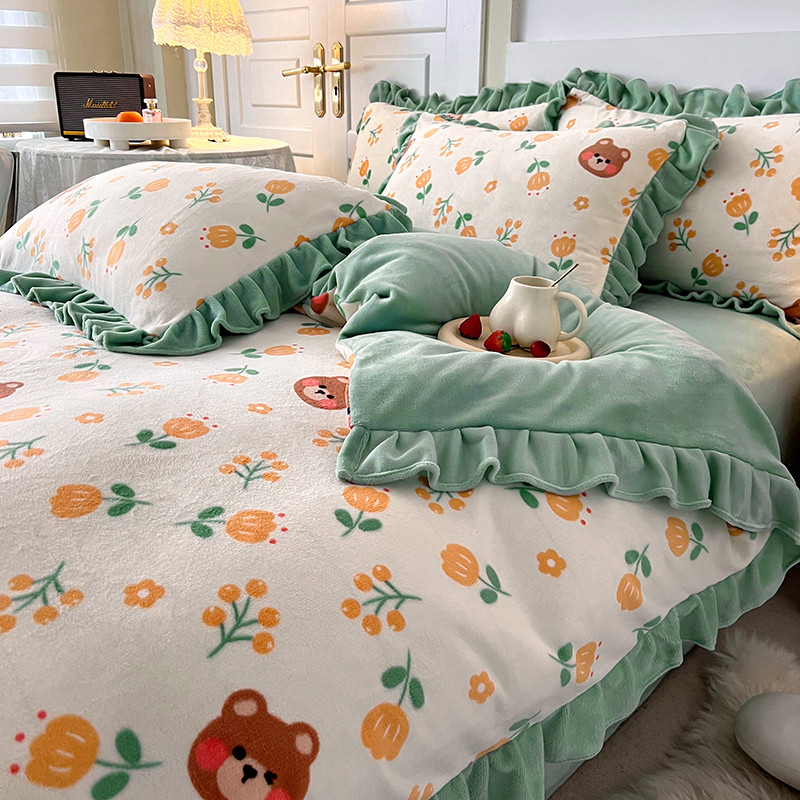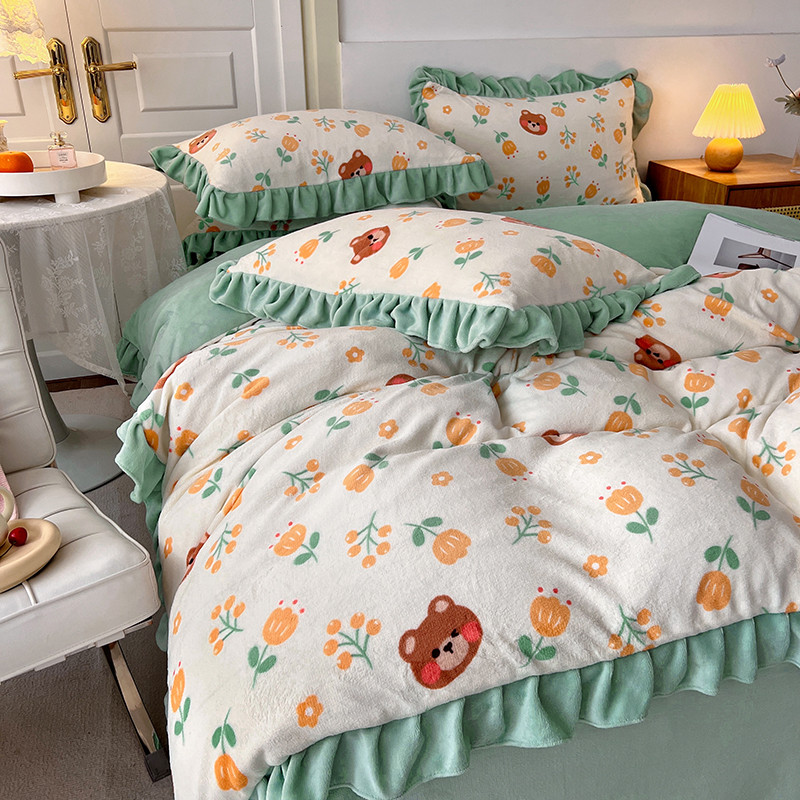 维娜斯 2022新款高克重牛奶绒花边四件套 花边-可爱熊