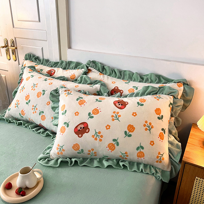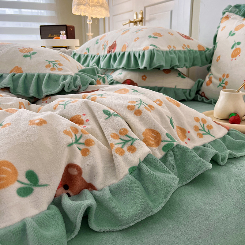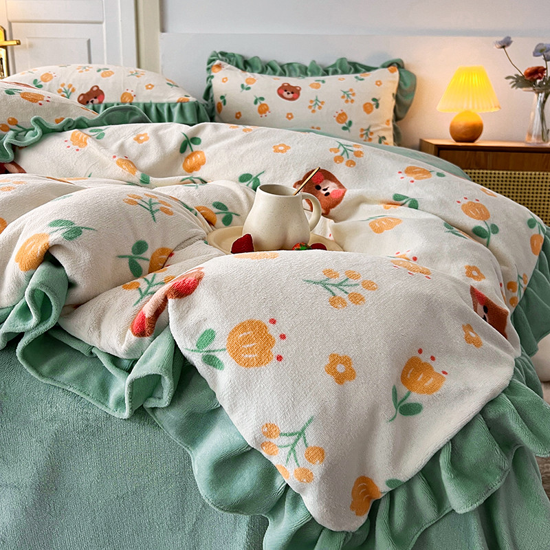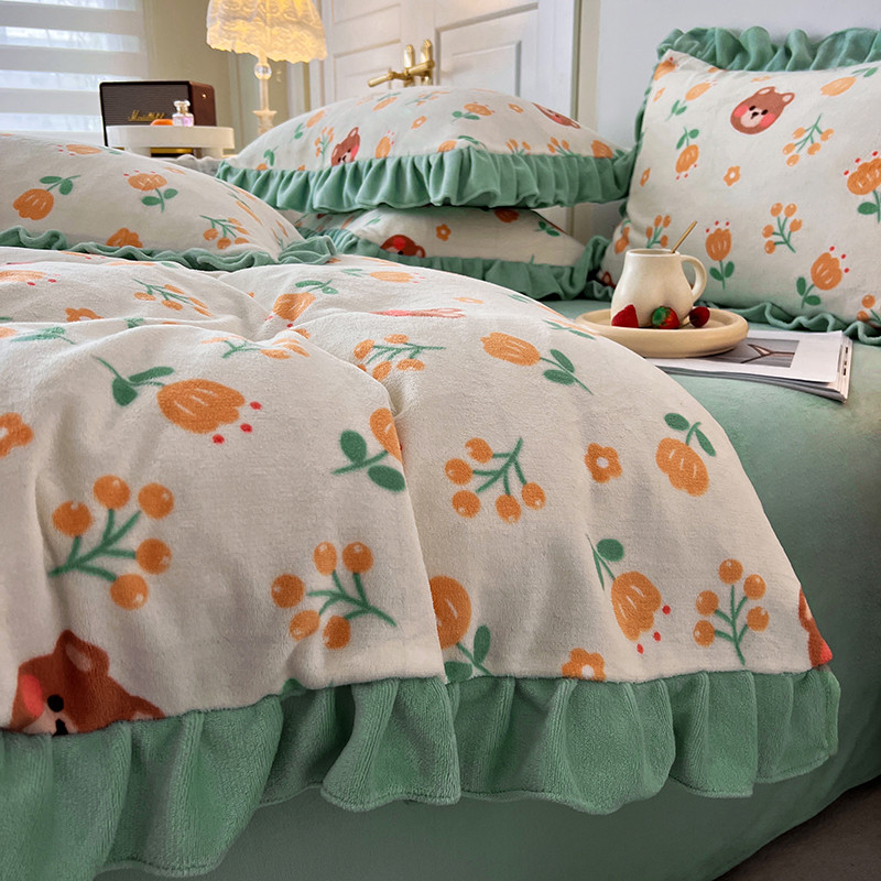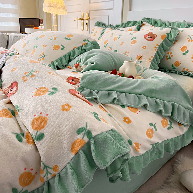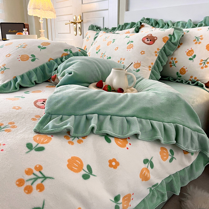 维娜斯 2022新款高克重牛奶绒花边四件套 花边-可爱熊