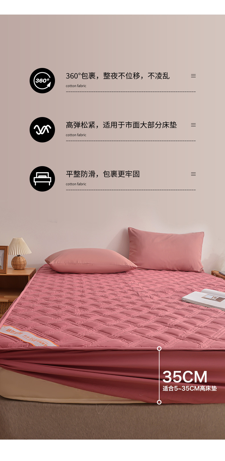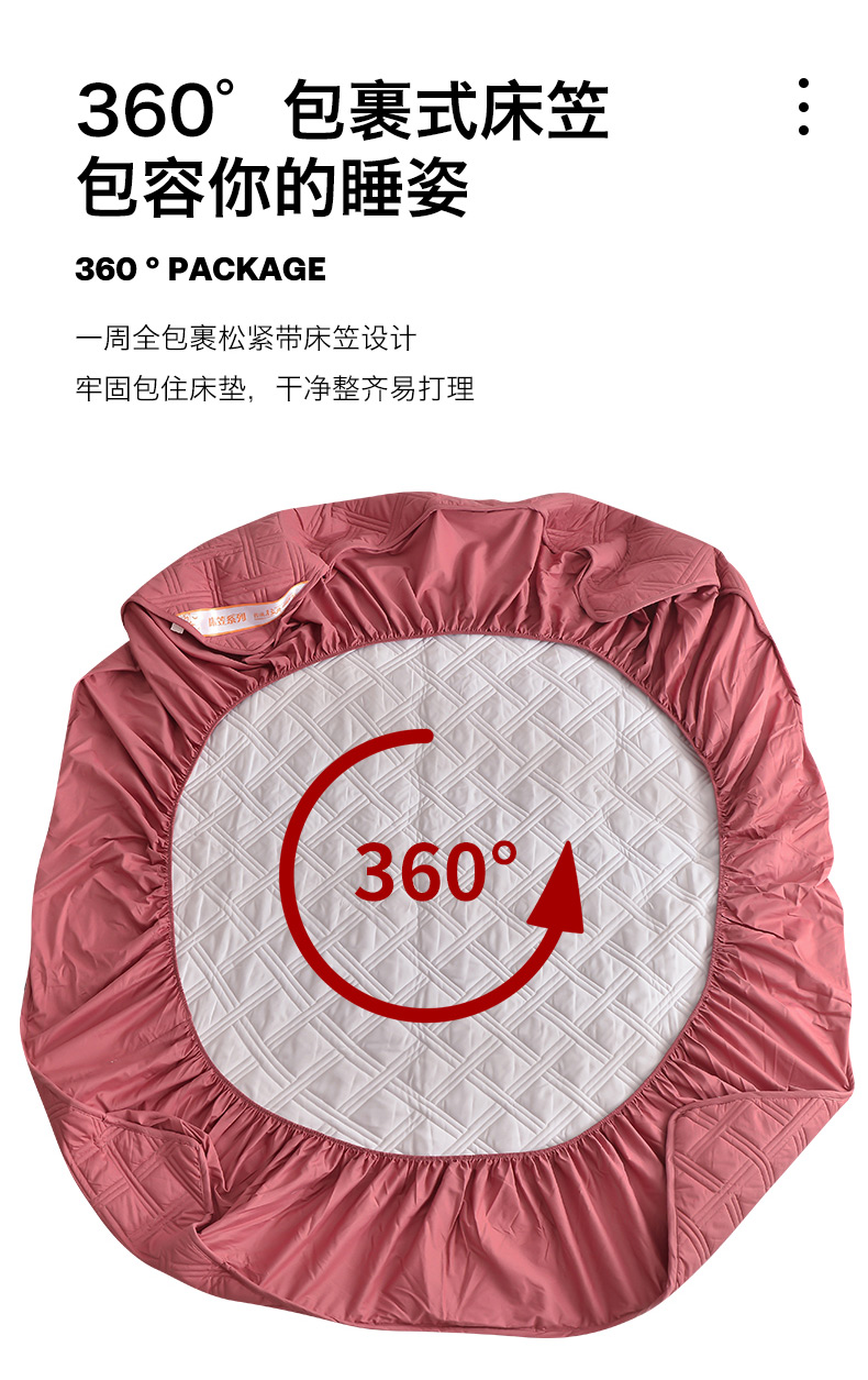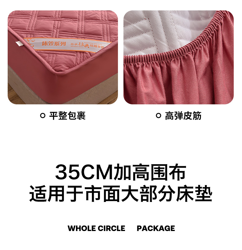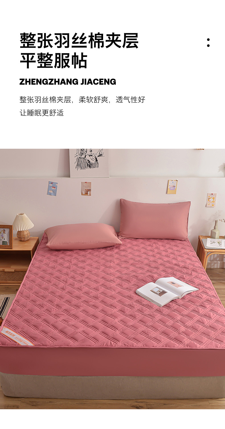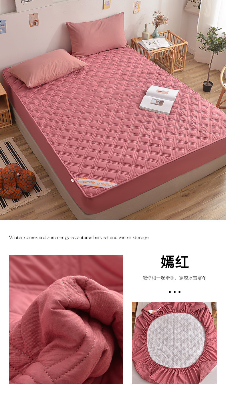 商品名称:梦柏 2023新款13372全棉斜纹夹棉床笠 嫣红