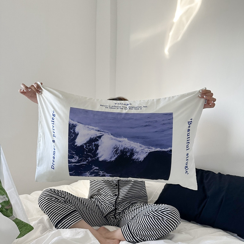 恋恋三季 2024新款60支长绒棉信封开口枕套 既见海