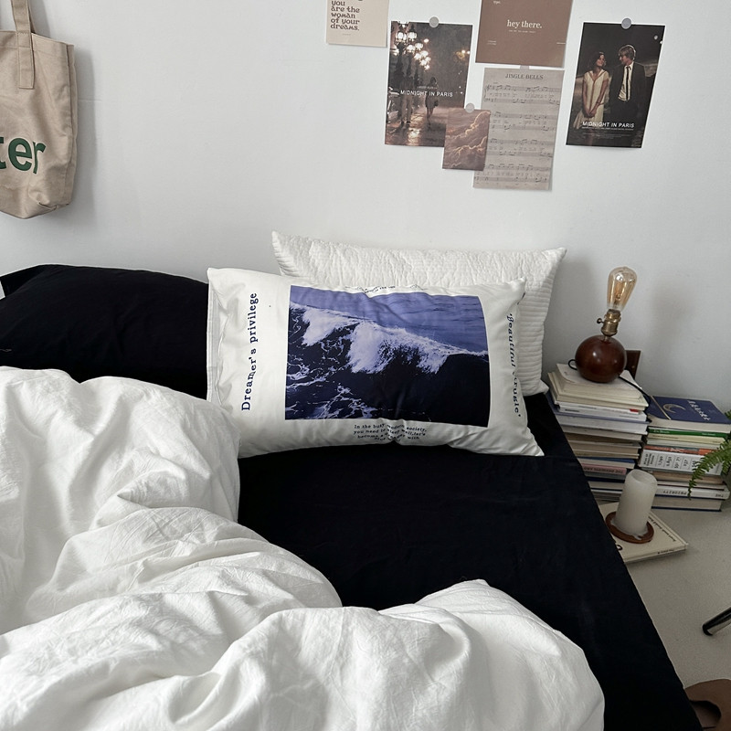 (总)恋恋三季 2025新款ins博主简约条纹极简风纯棉单被套,色织水洗-黑白世界,色织水洗-空白格
