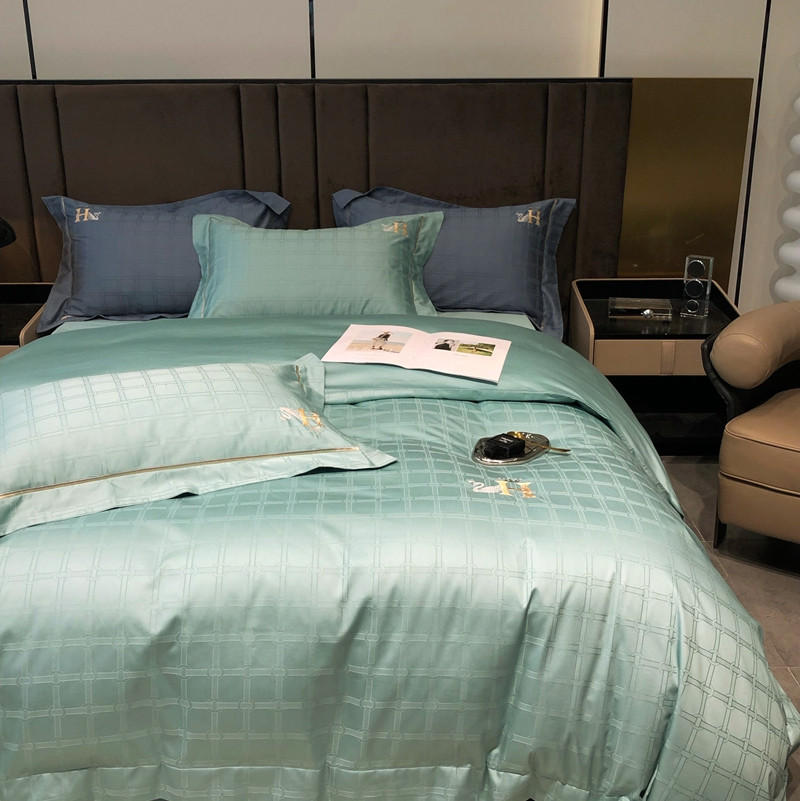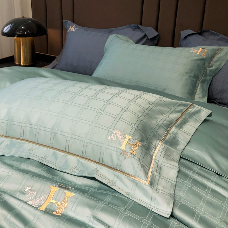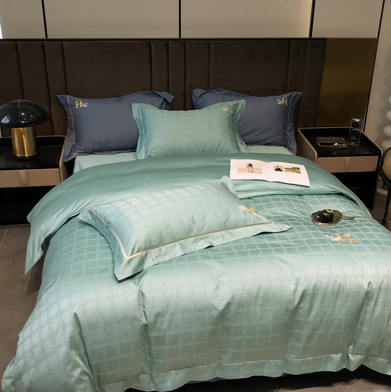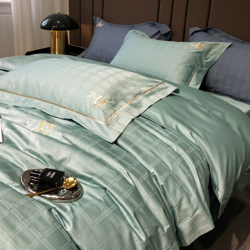 玖玖爱 2023新款120支贡缎提花四件套 玛克湖绿
